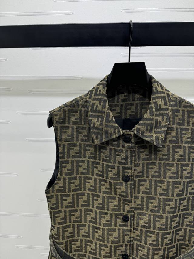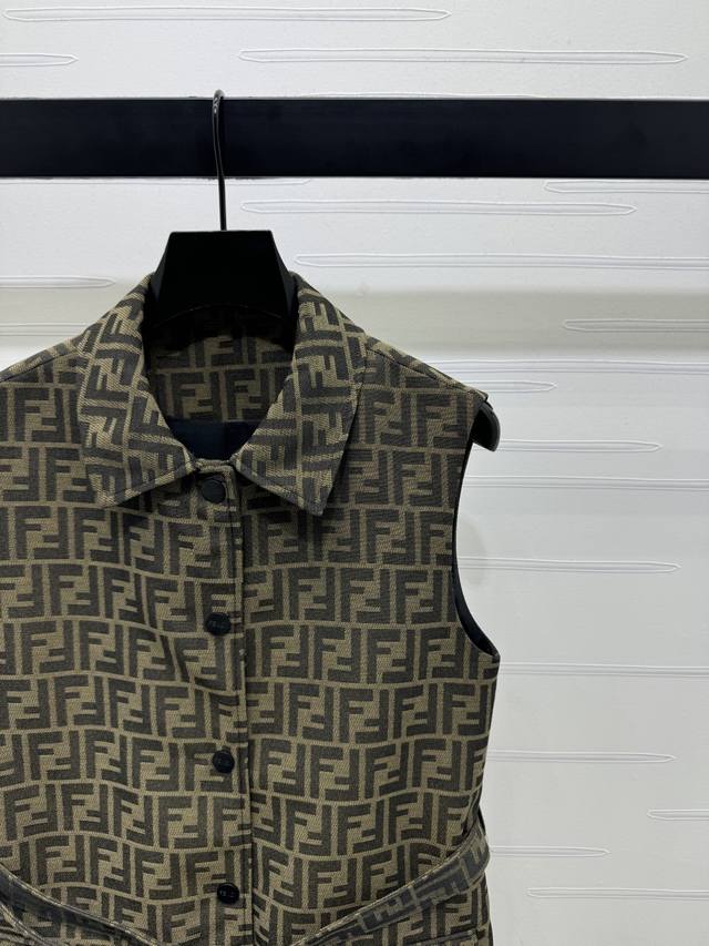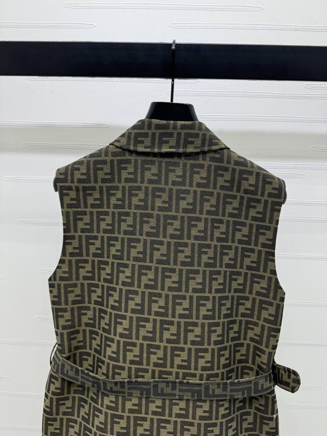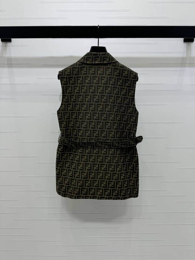New, original, high-quality Fend* 2025 Early Fall collection! Lapel jacquard vest! Custom imported jacquard material , premium quality, and all-over double-F jacquard accents highlight the brand's signature style. Flap pockets and a natural fabric belt at the waist create a cinched silhouette and add layered styling. The belted vest's tailoring effortlessly showcases style and style, offering a highly adaptable fit for stylish outfits! Available in one color! Sizes SM-L3! High-quality, bulky stock A706B520C