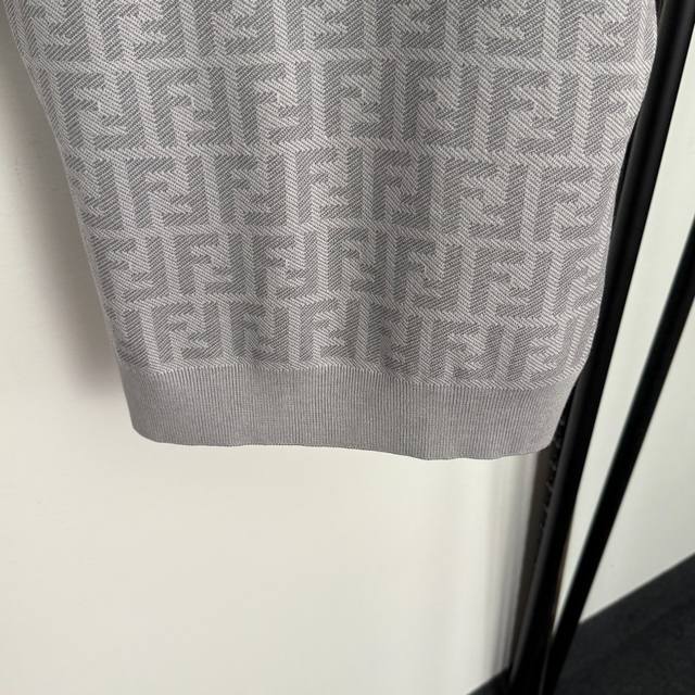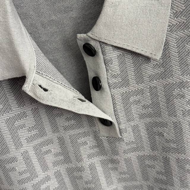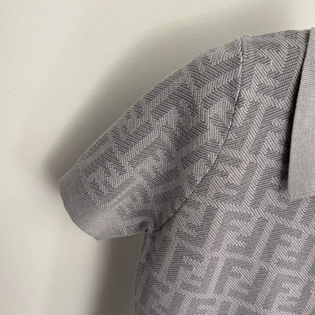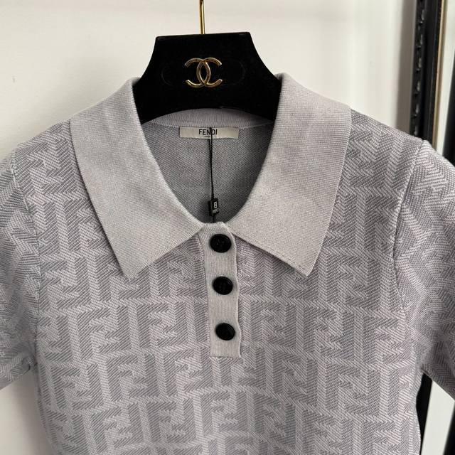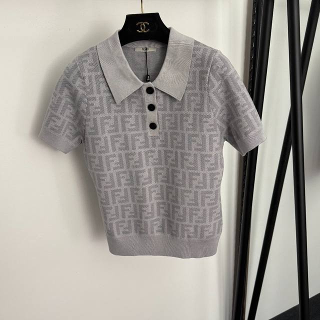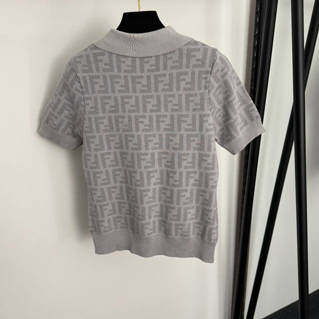 Style No. 20256871 Fend* New monogram F letter polo collar short-sleeved knit top, light gray, dark gray, sizes 36, 38, 40. Size 38: Bust 82cm, Sleeve Length 21cm, Length 55cm; Weight: 0.290kg.