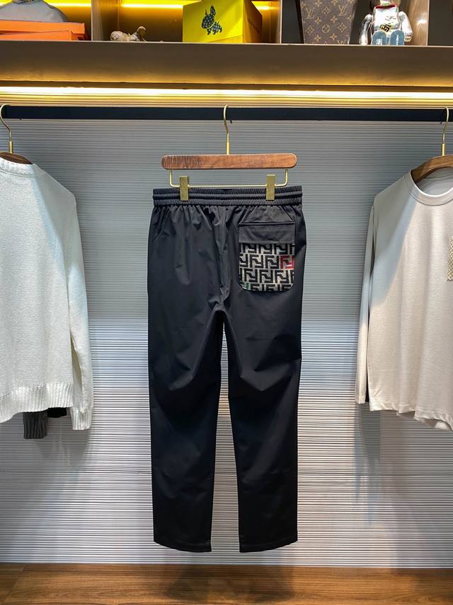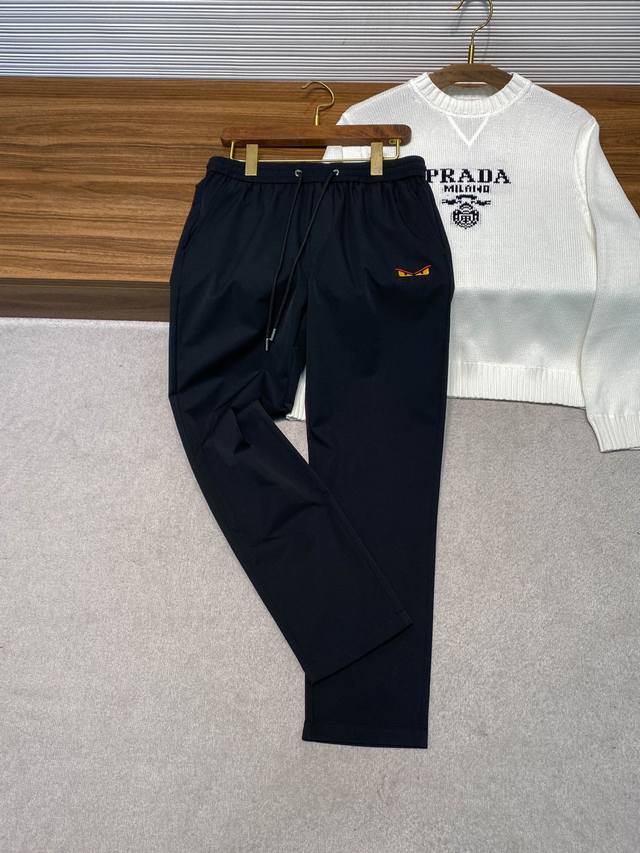 Fd25Fw New Early Fall Black Woven Drawstring Casual Pants. Men's straight-leg casual pants with classic eye embroidery and jacquard pockets! Available only through trading company channels and on our official website! With its unique fabric, exquisite craftsmanship, and ingenious design, these new F-brand casual pants perfectly blend style and comfort, allowing you to truly shine in your pursuit of individuality!