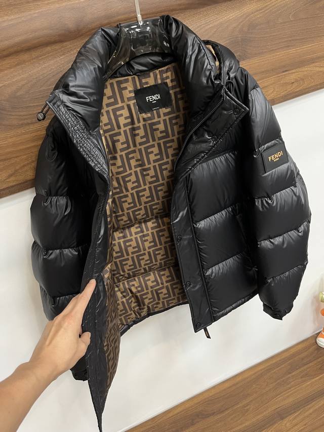 Featured Fendi 2025 latest fashion designer down jacket, Fendi hooded down jacket, a top-selling light luxury down jacket for winter, classic logo on the upper arm, filled with 90# white goose down, every detail shows the craftsmanship of the high-end structural tailoring design to show the versatility of men's image, slim and neat, well-fitting, meets the current trend of multi-layer dressing, a versatile style for everyday life! DDD Colors: Black, Army Green DDD Sizes: M-3XL DDD H2025 New Arrival DDD