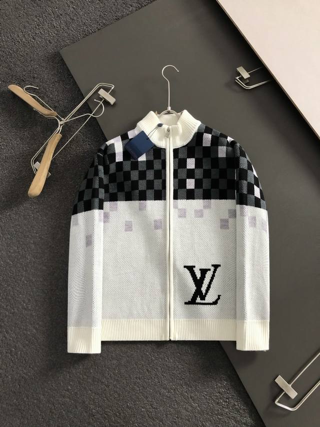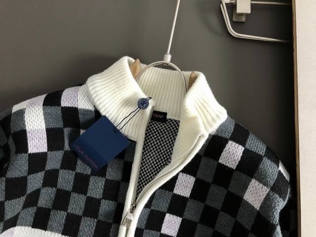 Fend* Slightly Wide Fit M-Xxxl DDD 2025 Autumn/Winter Trendy Knit Cardigan. Featuring a black, white, and gray checkered jacquard pattern as its main color, it cleverly incorporates letter zipper elements, breaking the monotony of traditional knitwear and showcasing individuality and a free spirit. The three-dimensional cut fits the body well, with a clean and stylish design that easily elongates the leg line, creating a casual and carefree style. The high-quality fabric is crisp and durable, while also being breathable and comfortable, suitable for everyday wear or light outdoor activities. Detailed webbing adds a touch of fashion. Whether paired with a casual look of a T-shirt and jeans or layered for a mixed-and-matched style, it's easy to pull off, making it an indispensable fashion item for the autumn/winter transition season. DDD Available Now: M-Xxxl DDD