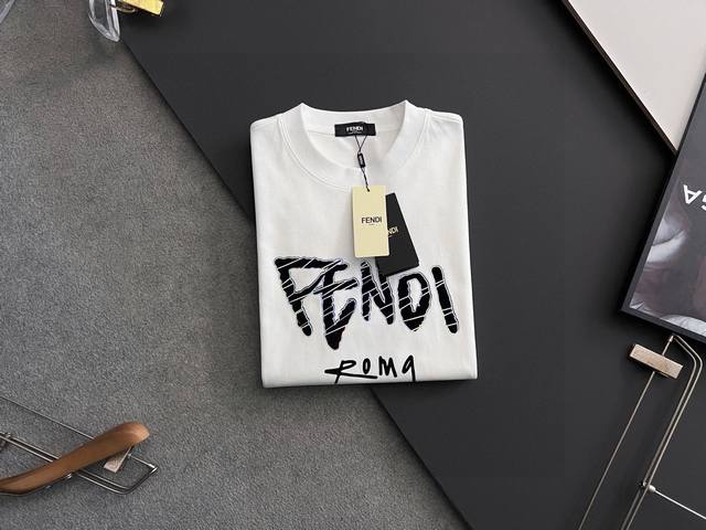Fend welfare*, 2025Ss hot-selling 280G pure cotton double yarn hot-selling spot four seasons series short sleeve, simple basic wardrobe artifact, casual and versatile must-have style with first-class workmanship and texture, two colors recommended: white and black, exclusive version test, no solution on the upper body, suitable for everyone, size M-3Xl