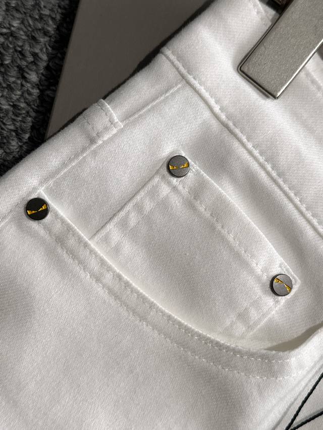 Fendi 2025 four seasons new hot brick pocket slim jeans, made of imported Japanese Denim plain cotton denim fabric woven production, three complete labels, simple yet elegant, soft, delicate and comfortable, versatile and fashionable upper body