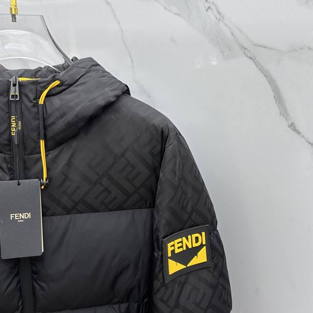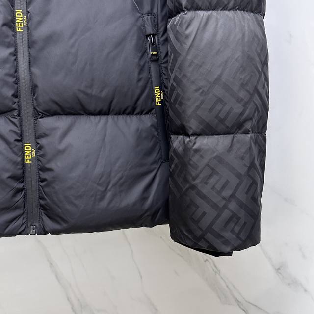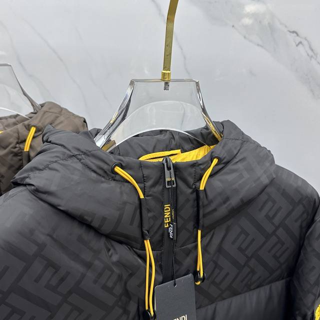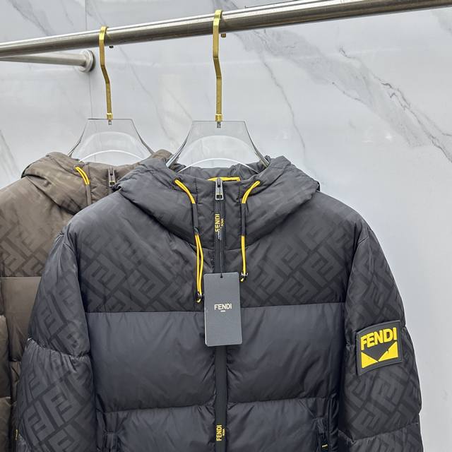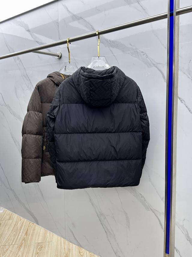 Fendi 2025 latest fashion down jacket, non-detachable hood, top-selling winter down jacket, classic logo double Ff jacquard fabric, 90# white goose down filling, exquisite craftsmanship in every detail, high-end structural tailoring design to showcase the diverse image of men, slim and neat, well-fitting, meets the current trend of multi-layered dressing, a versatile style for everyday life! Sizes: M-3XL