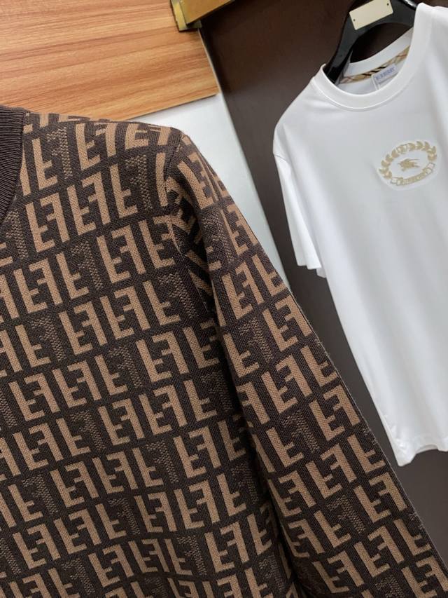 Fendi 2025Fw Men's Autumn/Winter Wool Blend Sweater - A versatile and casual everyday wear piece! The custom-made fabric perfectly blends fashion aesthetics with a new urban business casual concept, flattering the figure. Different styles to choose from: a classic style, a timeless outerwear piece that unlocks versatile looks; simple yet sophisticated, with details showcasing quality. Warmth and style, I want it all. Break the mold, express yourself. Trends come and go, style lasts. Lightweight and comfortable, allowing for freedom of movement. A powerful presence, an essential for the workplace . Leading the trend, showcasing your attitude , fearless of challenges, youthful vitality, and excellent value. The entire piece perfectly interprets Italian sophistication and outdoor functionality, both formal and playful, creating a unique style. The overall silhouette leans towards a minimalist style, with distinctive and sophisticated details that enrich the overall visual appeal. A wardrobe staple for business casual wear with high attendance rates! A rare find! 48-56. Please provide your height and weight when ordering.