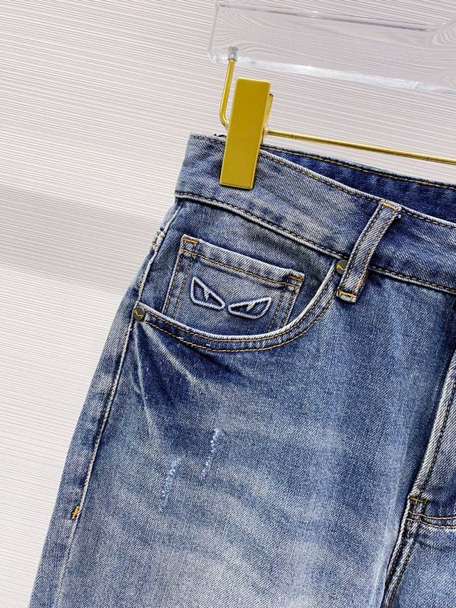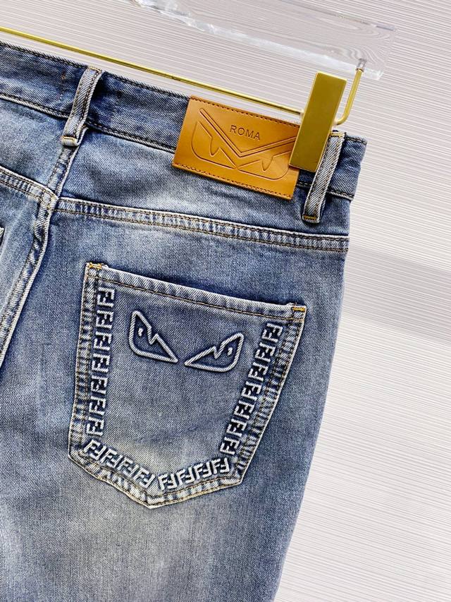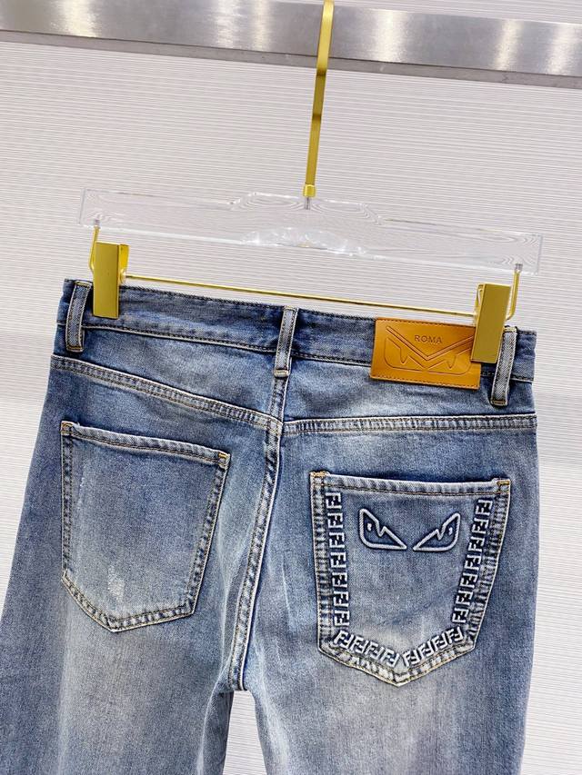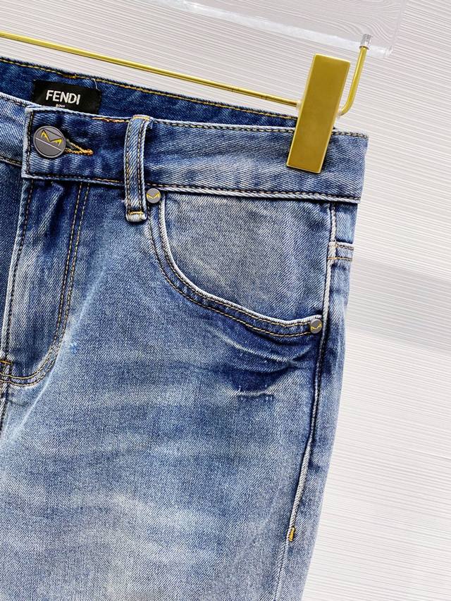 / Fendi 2025Ss autumn and winter new slim-fit jeans with perfect washing process,