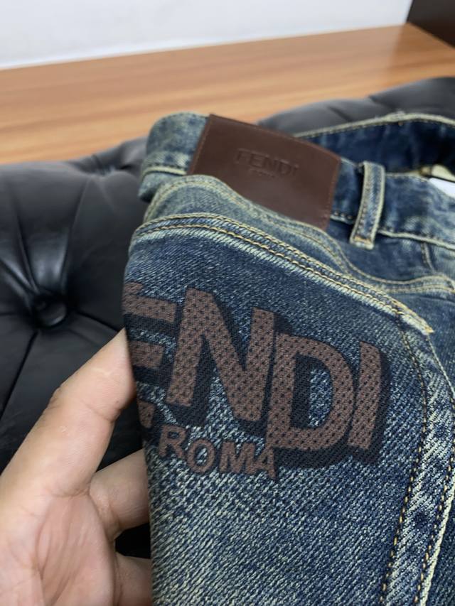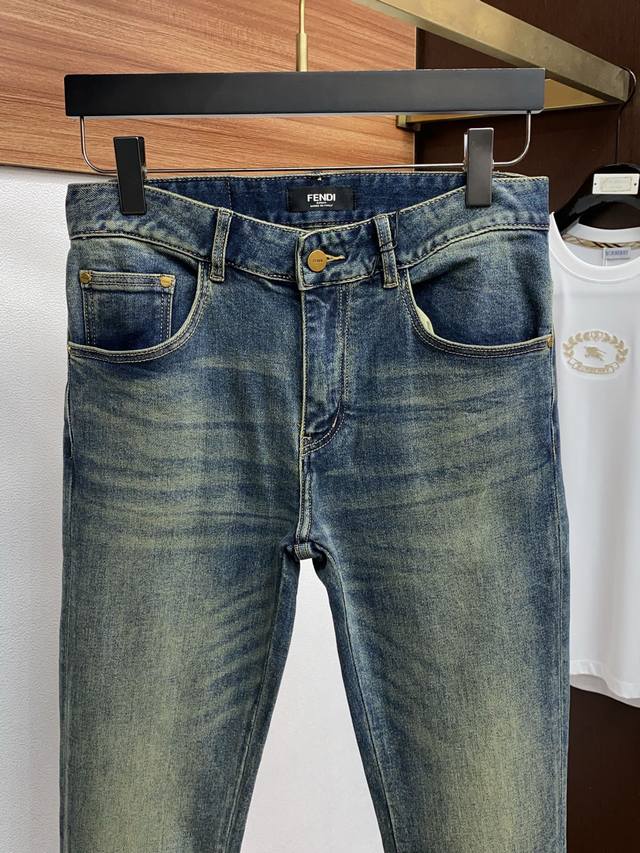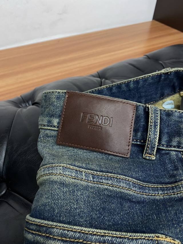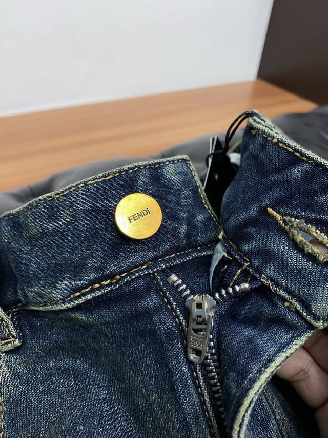 Fendi 25 New Style, Exclusive Custom-Made Imported Denim Fabric, Rare Fabric, Super Comfortable, Complex Craftsmanship, All-Season Jeans, Knitted Denim, Distressed Finish, Exclusive Custom-Made, Japanese Custom-Made, Original Quality, High-End Quality, Only a Large-Scale Washing Workshop Can Produce, Slim Fit, Flattering Straight Leg Pants, Sizes 28-38 DDD