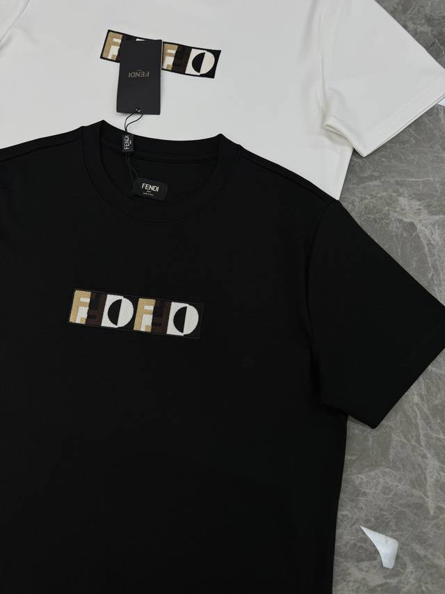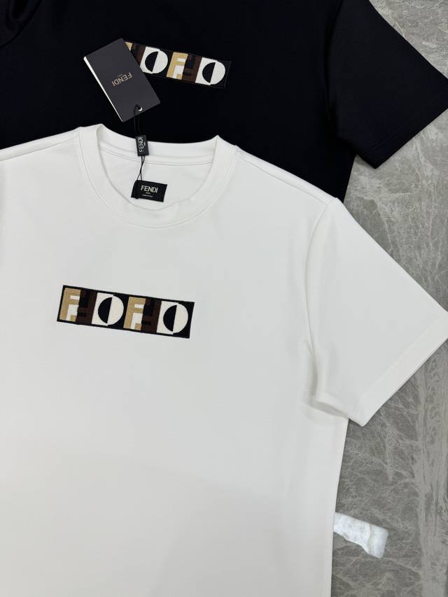Fendi 25S New Modal T-Shirt. A stylish short-sleeved shirt with an undeniable embroidered design. Features the classic Ff brand logo on the chest. Multiple colors and intricate embroidery! A truly beautiful Fendi shirt. Exquisite craftsmanship, especially the stunning embroidered F letter. The fabric is incredibly comfortable, made of 300g modal cotton, with a soft and delicate feel. It looks fantastic on! Slim fit, avoiding a bulky look. Excellent condition! Colors: Black, White. Sizes: M-3XL Slim fit! S and 4XL can be custom-made. For someone 175cm tall and weighing 140kg, L is recommended.
