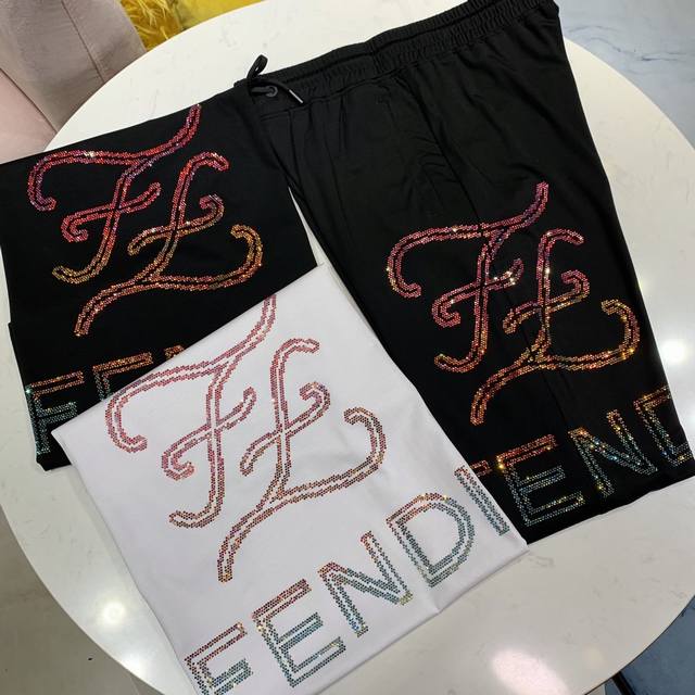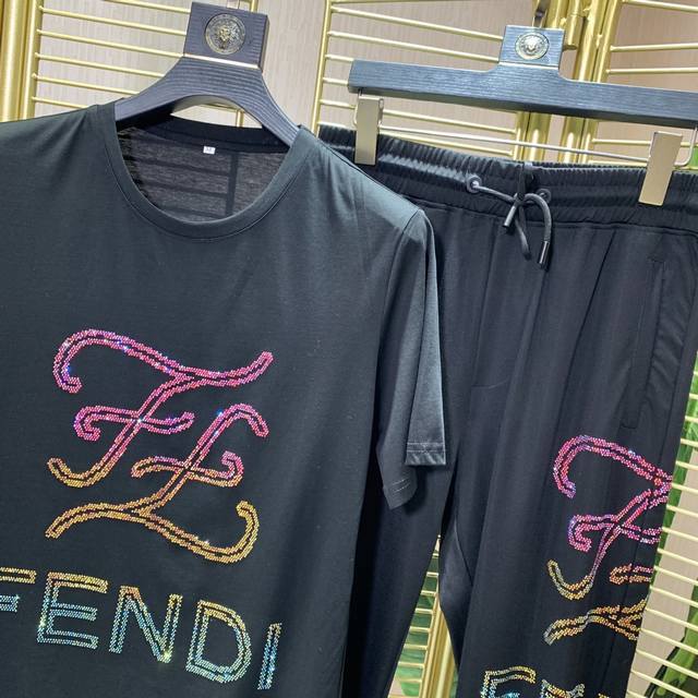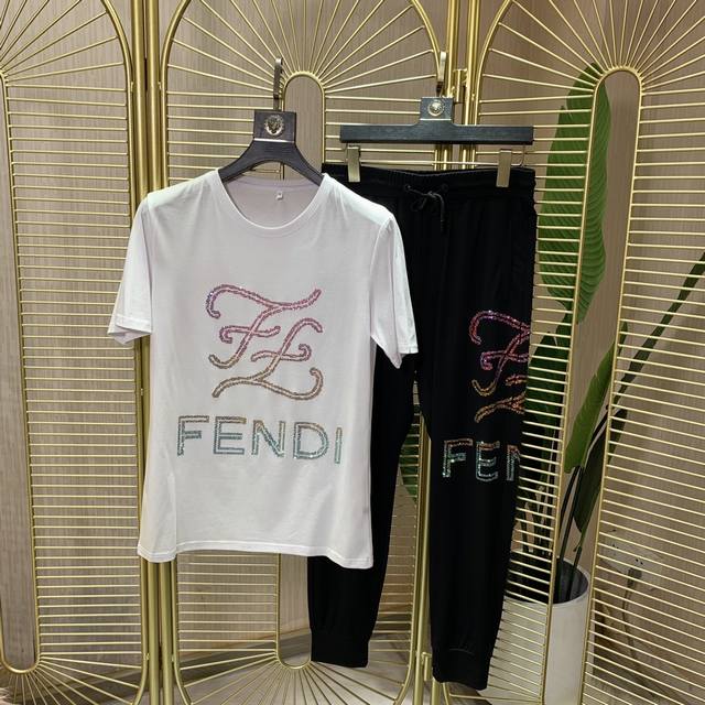 Fendi 2680's official website offers the latest spring and summer casual short-sleeved suits! This high-end, official-issue product is the same! Soft and comfortable fabric! Sweat-wicking and breathable, the ultimate in quality! Made from imported mercerized cotton! Meticulous materials! Slim fit! Comfortable and breathable! The hand-painted, rhinestone-embellished logo is a standout! Luxurious yet stylish and versatile! Exquisite craftsmanship! Looks amazing on you! Colors: Black and White Sizes: M-3Xl