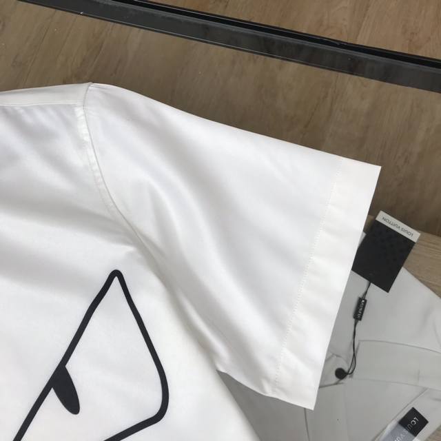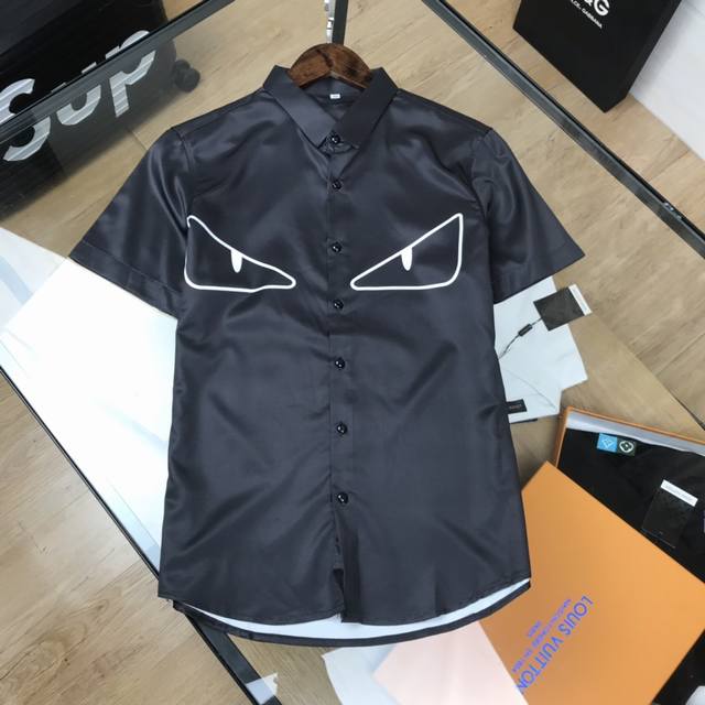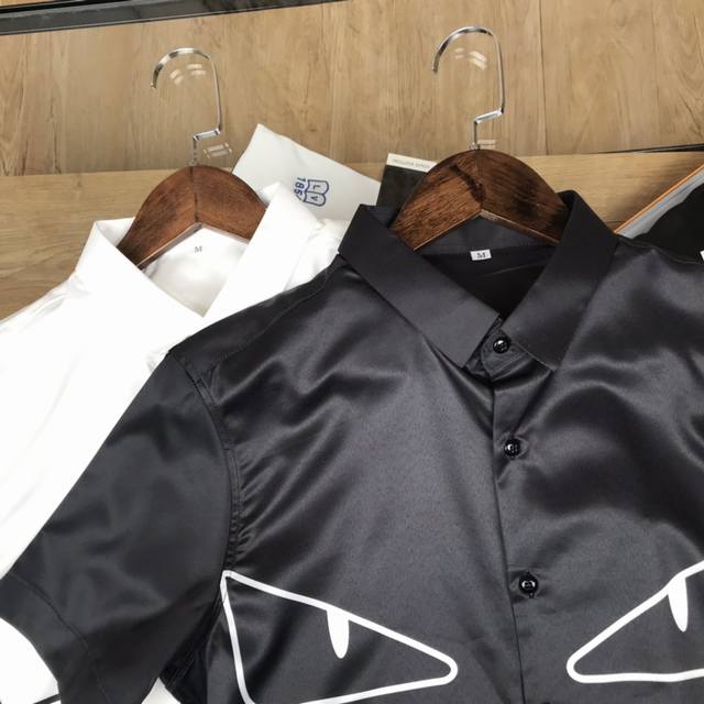 Fendi all-over print short-sleeved shirt, a new spring shirt, made from imported, smooth-feeling imitation silk. Three-dimensional tailoring for a versatile everyday look. M-3Xl, black, white,