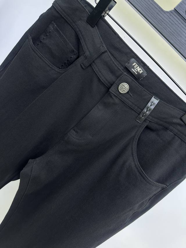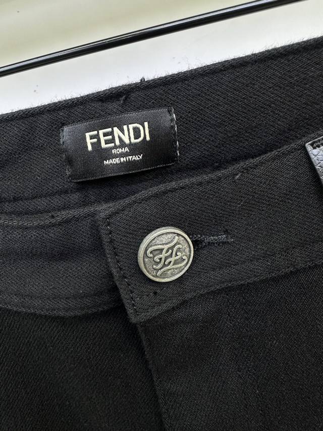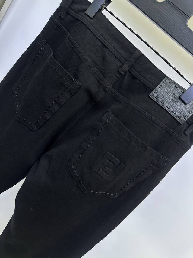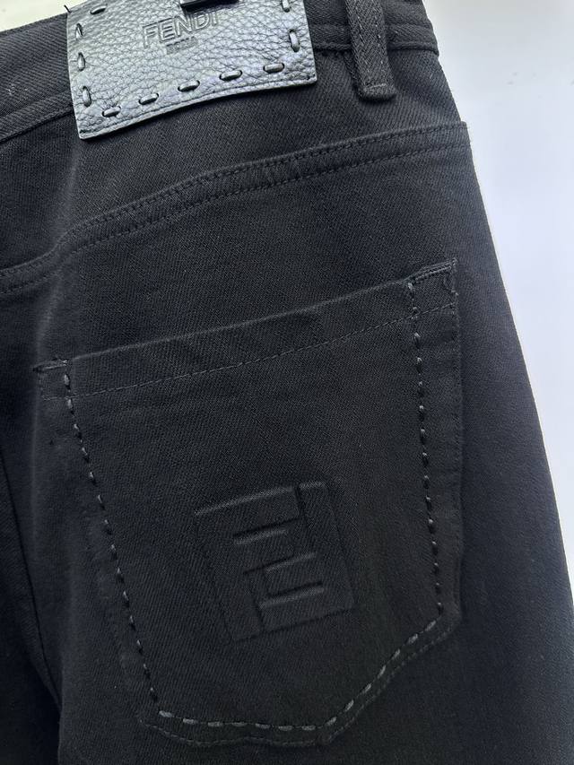 Fendi Black Bull 25Ss new autumn and winter straight version customized pure black denim environmentally friendly fabric does not fade Ff antique silver distressed hardware counter latest synchronization back pocket craftsmanship and cowhide brand echo the version of the super pure color: black size 30.31.32.33.34.35.36.38