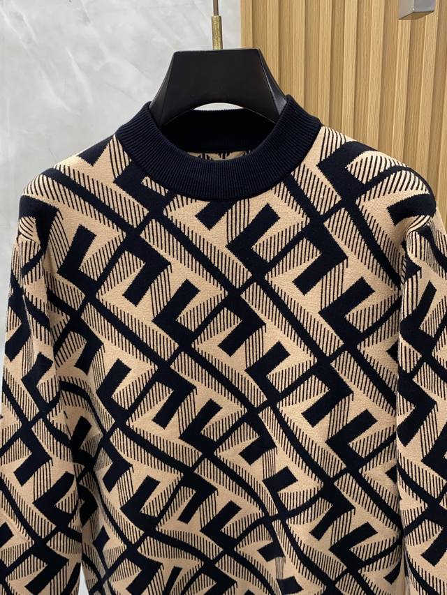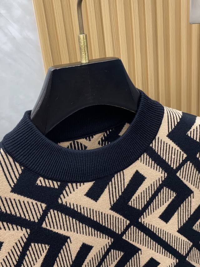 Fendi Highly Recommends! 2025 Autumn/Winter New Crew Neck Sweater, Same Style as Boutique, Classic Basic Style, Natural Knit, Brand Elements Logo. A must-have for autumn and winter. Made of wool blend knitwear, this thick sweater is exquisite, simple, and elegant. The logo embellishment design avoids overly complicated craftsmanship, focusing on the fusion of design and materials. A minimalist European style paired with imported wool knit fabric, it's a must-have for layering in autumn and winter! Sizes: M-3XL DDD