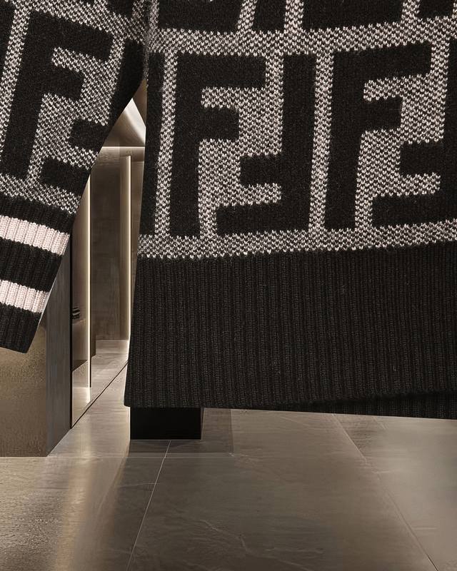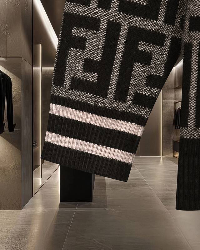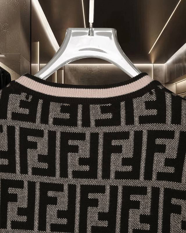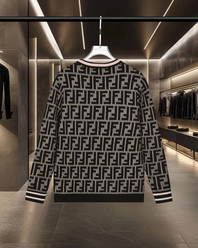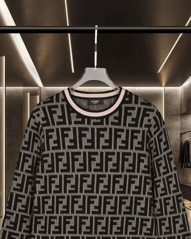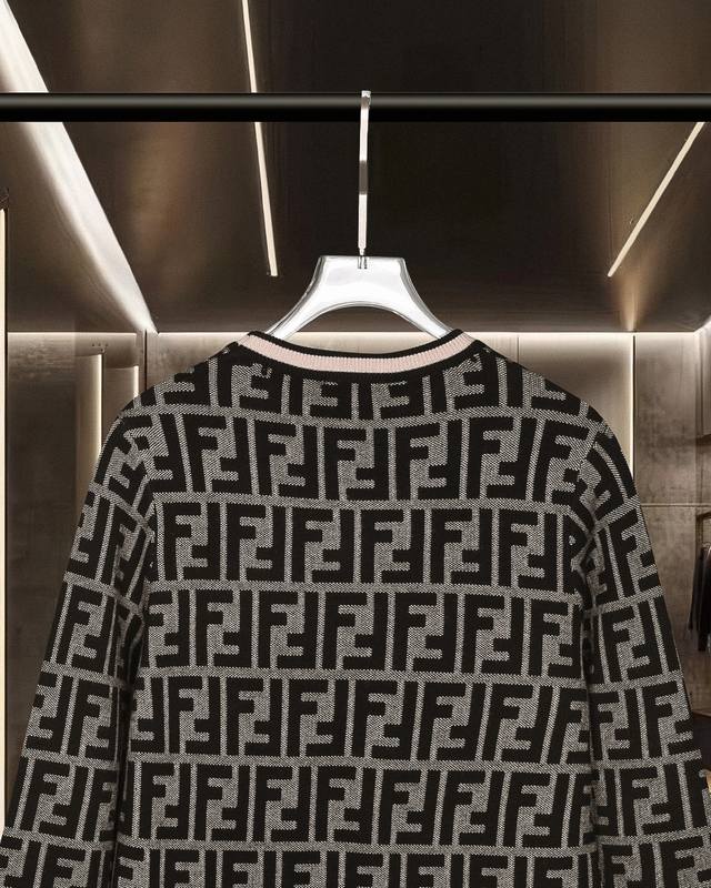 Fendi long-sleeved crew neck sweater with jacquard Ff logo on the side sleeves.