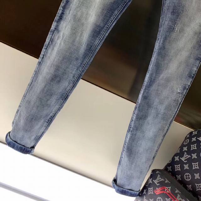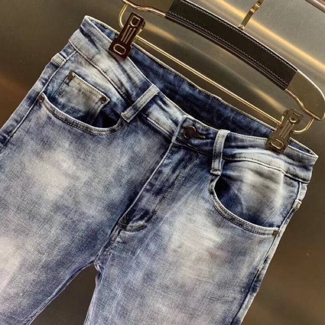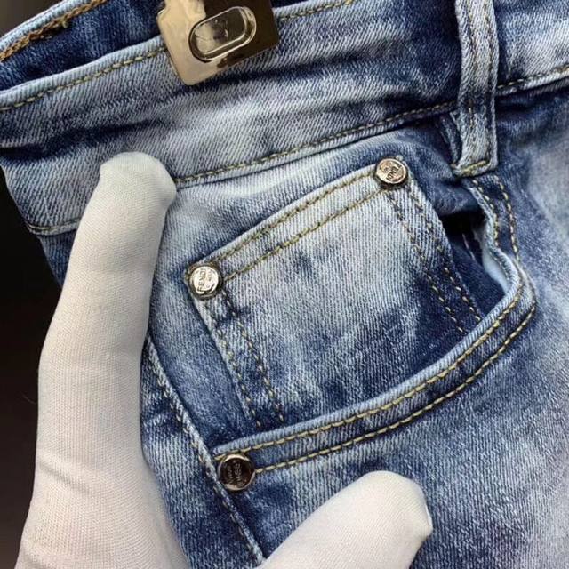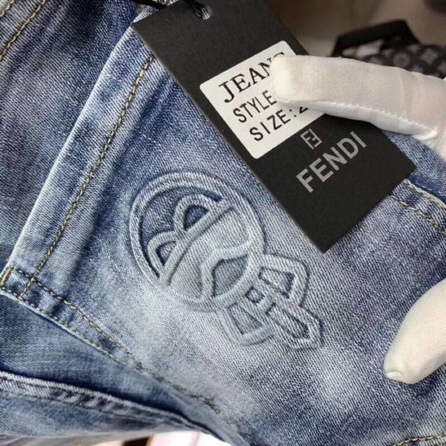 Fendi men's new spring/summer ultra-thin Korean-style slim-fit trousers. Made from premium cotton stretch fabric, they're stretchy, comfortable, and slim-fitting! The refined and elegant cut perfectly shapes your legs! The premium hardware and leather brand details elevate the look! The classic denim color is versatile and timeless! Sizes: 28-38