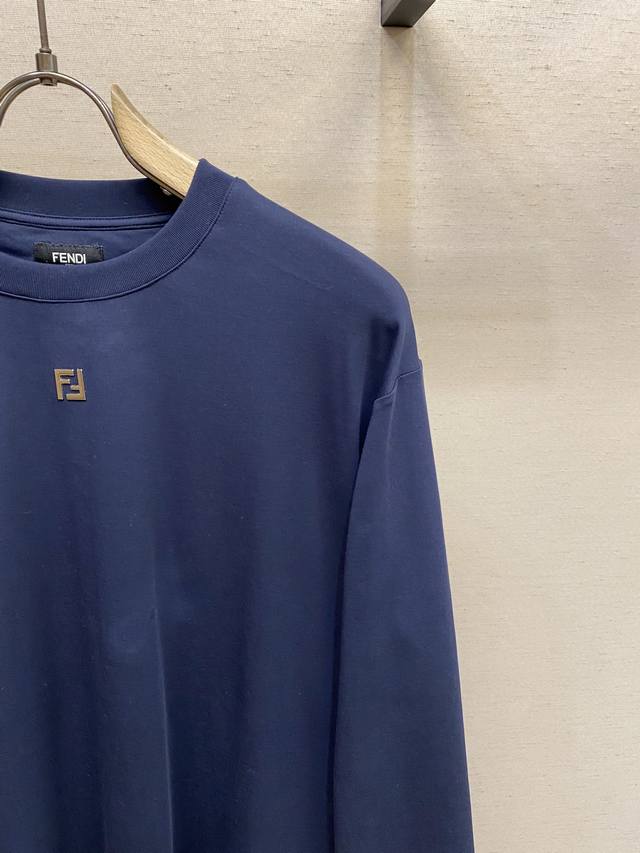 Fendi, Metal F Logo Crew Neck Long Sleeve