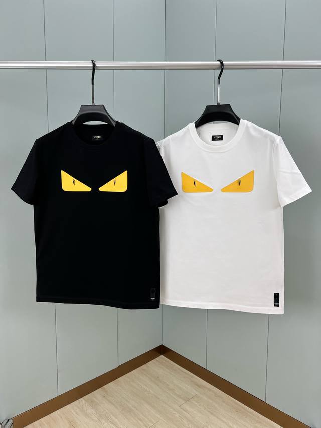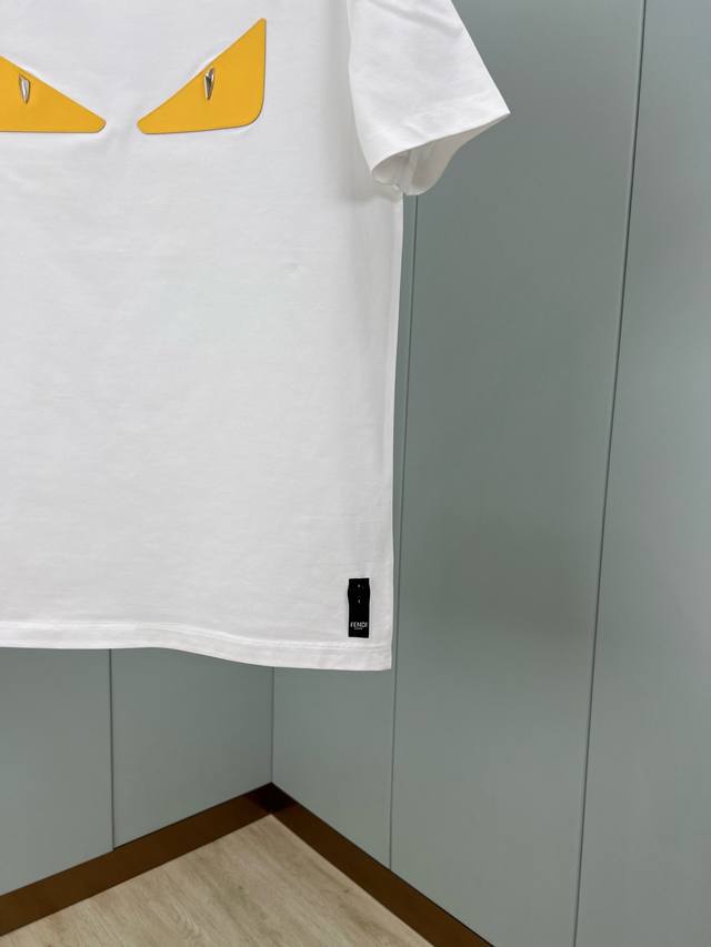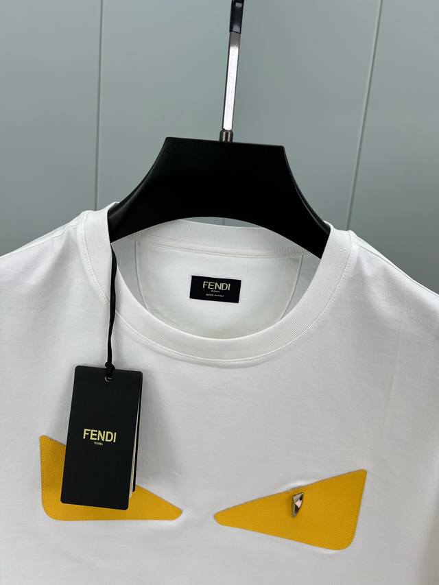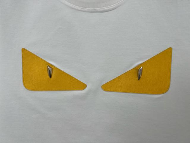 Fendi Spring/Summer Men's Metal Rivet Leather Yellow Bag Bugs Short-Sleeved T-sh