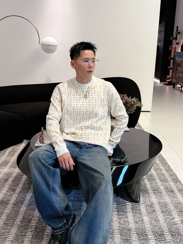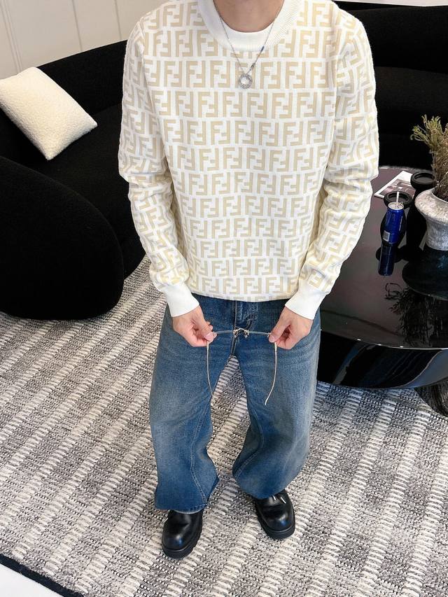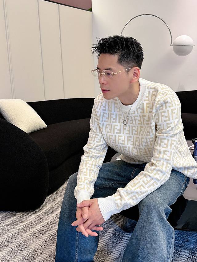 Fendi Sweater, 2025 Fall/Winter Newest Collection, Top-Tier 1:1 Replica from Official Stores, Perfect Condition! Thickened Style, a Must-Have for Trendsetters! Savvy buyers, grab yours now! Fabric: 10% Cashmere, 60% Wool, 30% Spandex. Sizes M-3XL.