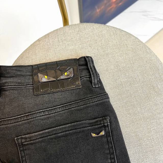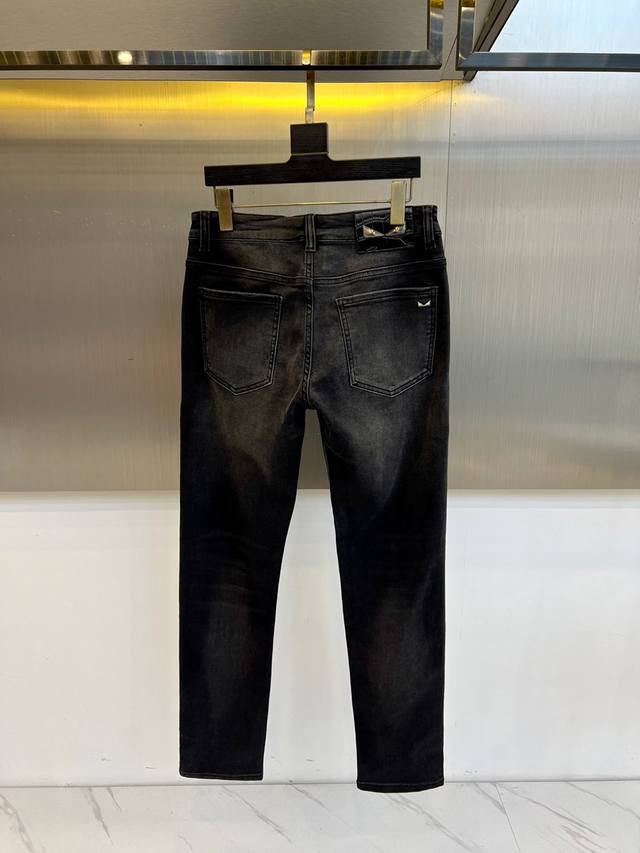 Fendi's new Autumn/Winter 2025 men's five-pocket jeans are now available. The fabric contains Lycra fiber, which moves with the body and remains true to the original shape. It also incorporates spandex and pure green, pollution-free cotton for a comfortable, slightly stretchy feel, leaving the upper body feeling free. The overall solid color design is simple , with only the tonal logo embroidery on the back pocket, highlighting the brand's signature elements. The classic five-pocket style features a moderate thickness for comfort and breathability, and the three-dimensional cut provides a slightly slim fit. This basic, easy-to-wear, versatile pair of jeans is compatible with all styles! 28 38 No 37