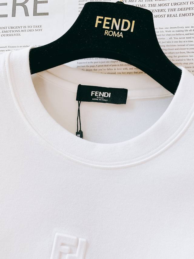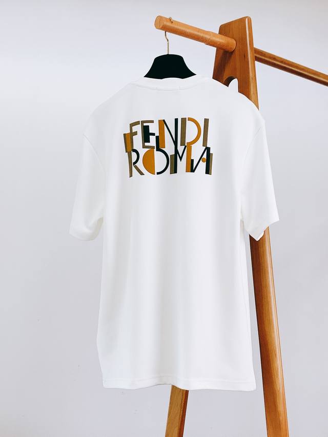 casual base T-shirt from the 2025 Fw Early Fall collection. Made from high-count Egyptian cotton, it feels soft yet sculpted, yet soft yet resilient. A liquid ammonia treatment significantly enhances its toughness and wrinkle resistance, ensuring long-lasting wear. The slightly contoured silhouette is perfectly tailored for comfort and a flattering fit. The classic double F logo on the front of the