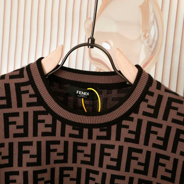 The new hit Fendi product, the full double F round neck wool knit is made of high-end core-spun yarn fabric, the neckline is uniquely splashed, and the hem uses the double F logo. It is really great and looks fashionable with anything. The workmanship details are 1:1 synchronized with the official website. It will never pill or get stuck. It feels super comfortable to the touch. The version is particularly comfortable. The appearance is super high. The color combination is beautiful. The workmanship is super detailed. Highly recommended. The quality can be compared with the market without worrying about shopping around.