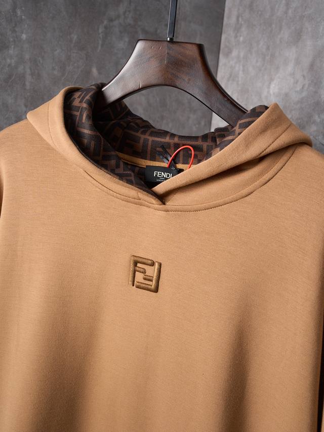 Actual product hanging photo Fendi Ff Embroidered Air Cotton Hooded Sweatshirt DDD Ddd In stock SML XL DDD Custom double-layer luxurious soft air cotton, soft and comfortable against the skin, with a warm khaki color interpreting restraint and composure. Adorned with Ff's signature 3D embroidery on the chest, just like the brand's DNA, it perfectly interprets the inside. Hidden inside is a unique surprise, arranged with a unique rhythm. It is not ostentatious, but can attract attention unintentionally. It is not ostentatious, but can be a silent declaration of fashion attitude. DDD Using imported machine 3D embroidery technology, using advanced computer control system and precision mechanical parts to achieve high precision in Ff logo 3D embroidery, with smooth and delicate lines. DDD Ergonomic 3D tailoring returns to traditional craftsmanship. Through the techniques of segmentation, folding, shrinking and stretching, the so-called slow work produces fine work. It is a respect for materials and a pursuit of the feel. The workmanship is complicated, tedious, slow and has high loss. DDD The fabrics are treated with a water-repellent process for a superior feel and texture, making them less prone to deformation, shrinkage, and fading, thus maintaining their long-lasting beauty. Loose fit.