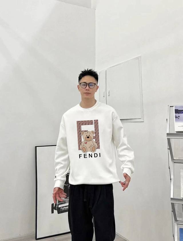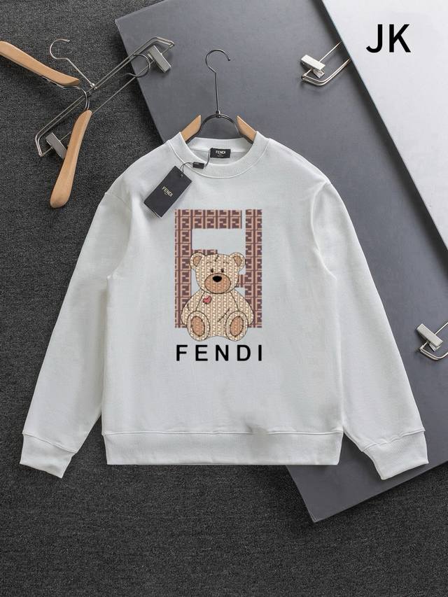 F8058 Fendi 2025 Autumn/Winter European Boutique New Top-Tier Original Fashion Casual Long-Sleeve Printed T-Shirt/Sweatshirt. Fabric: 420G double-strand terry cloth sweatshirt, matching 460G pure cotton ribbed fabric. Original fabric, same style as official, unisex. Accessories: Original accessories, 1:1, complete with three labels, Os drop shoulder style, unisex, official website quality. Purchased original mold and made with a full set of customized accessories; details determine success. Customized for fashion influencers and trendsetters, made with selected imported high-density cotton fabric, exquisite original logo, combining comfort and breathability, soft, wrinkle-resistant, elastic, and excellent drape. Whether worn alone or as an inner layer, it exudes style and suits men's practical dressing habits, pursuing a luxurious, noble, and elegant style, creating an extraordinary masculine taste, especially the first choice for urban fashion men. Colors: Black, White. Sizes: Xs, S, M, L.