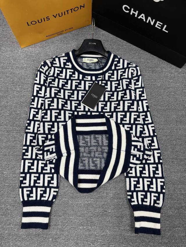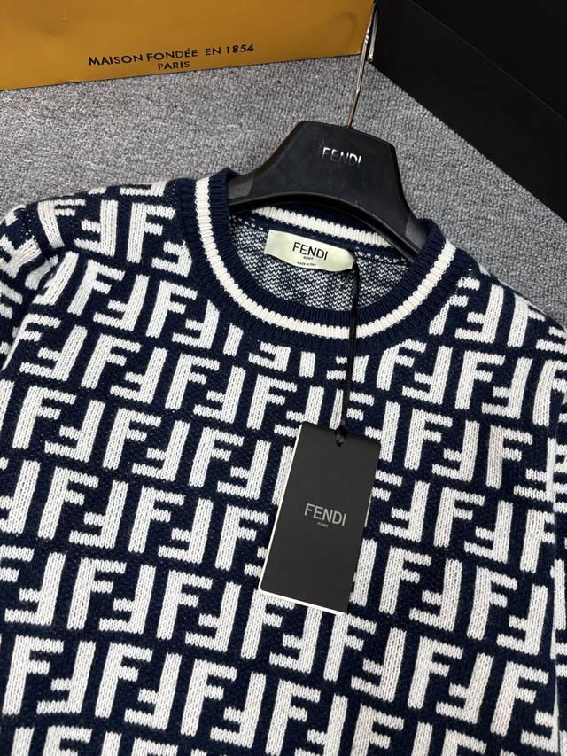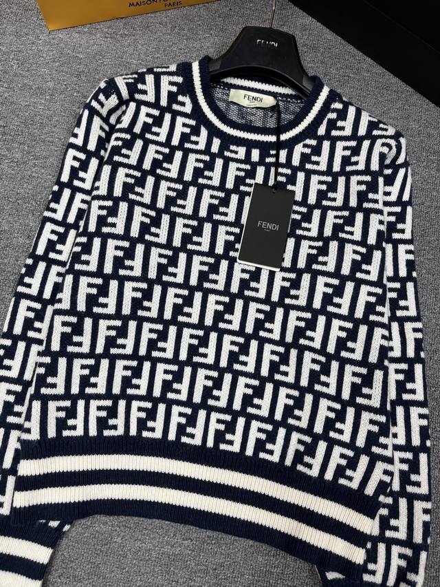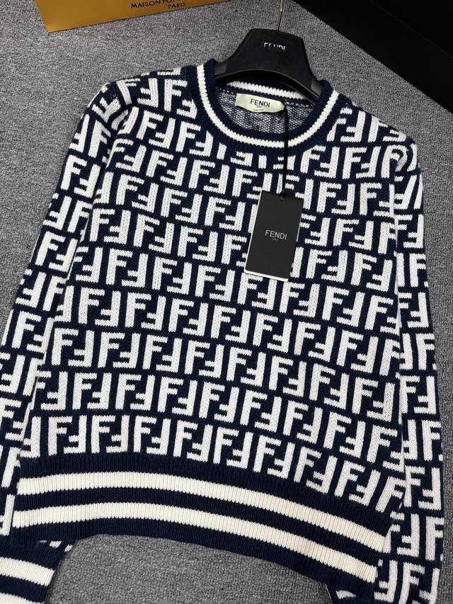 Fend*25 Autumn/Winter New Knitted Crew Neck Pullover Classic Brand Double F Monogram Logo Color Block Jacquard Decoration Regular Fit Classic Stylish Exquisite Versatile Sizes Sml