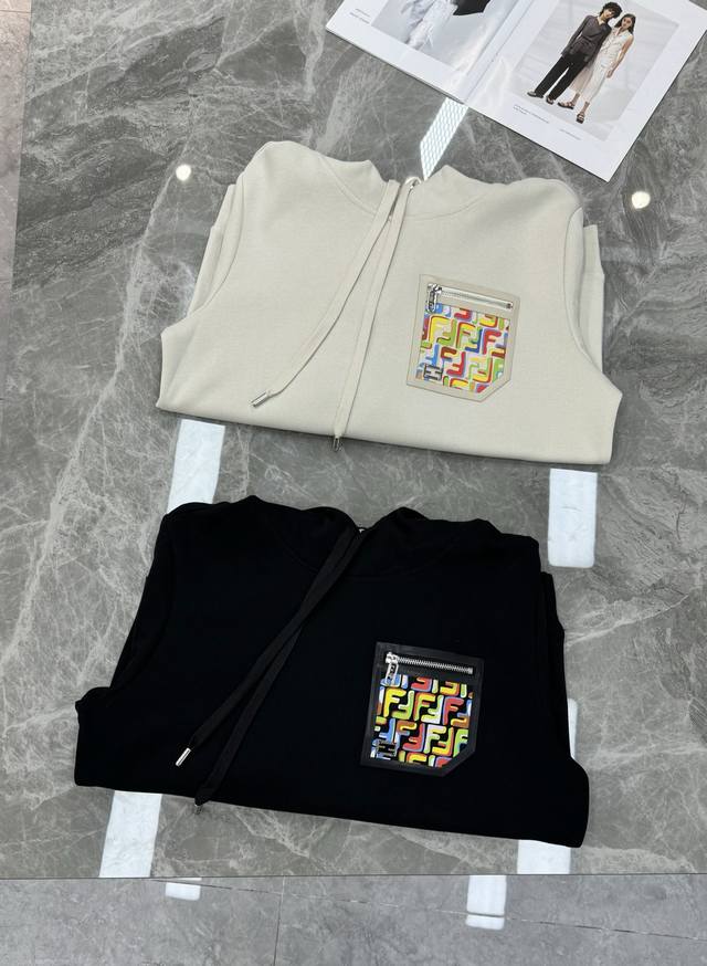 Fend*Fendi 25S Autumn/Winter New Hooded Sweatshirt. Unisex style. Latest 3D leather label color Ff design. Features pocket design. Made of custom 380G sweatshirt cotton, the fabric has a smooth and delicate weave. Superbly breathable and comfortable against the skin. Clearly visible print texture showcases craftsmanship... The overall design is simple, clear, and stylish, enhancing the wearer's overall look! Colors: Black, Beige. Sizes: M-3XL. Recommended size: L for 175cm, 140kg.
