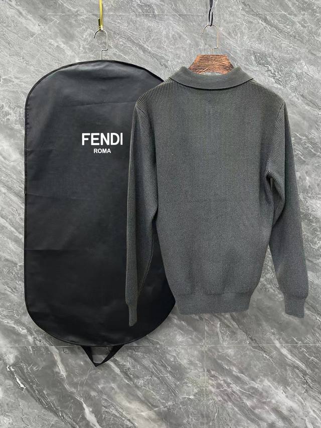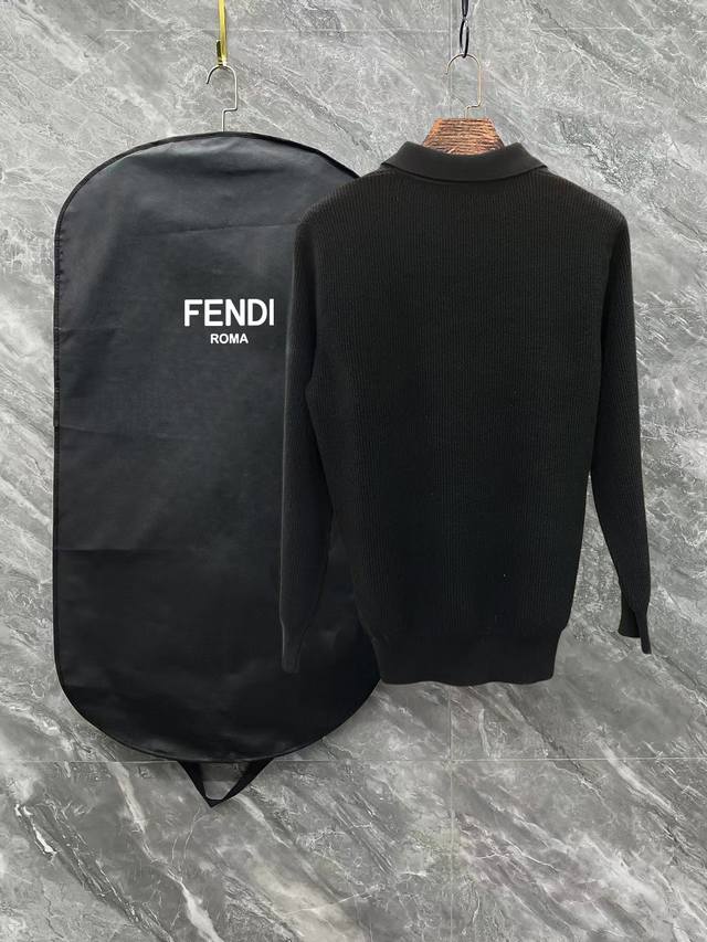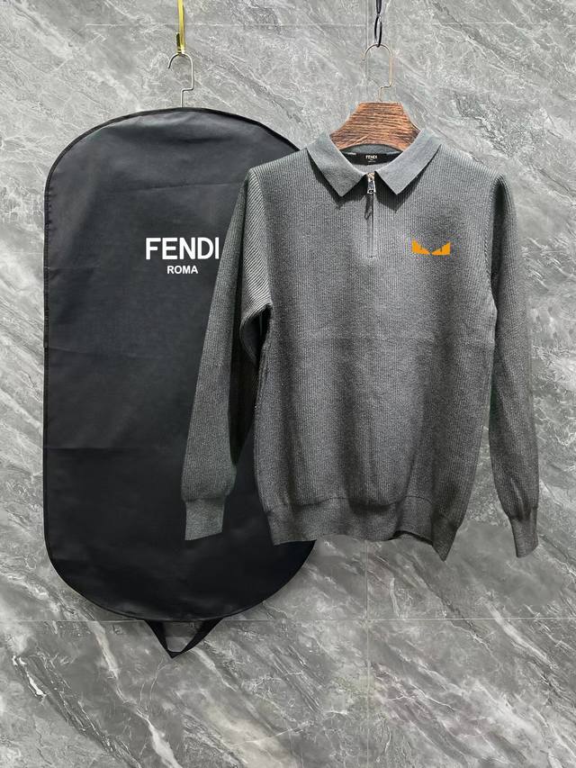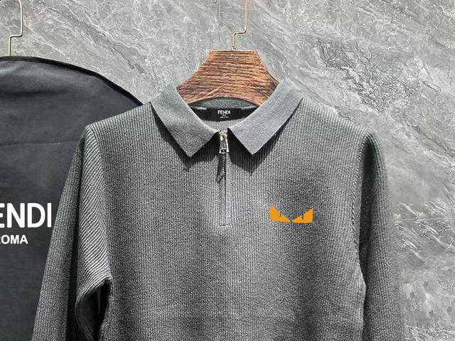 Fendi 2025 Newest Casual Polo Wool Sweater with Zipper Collar. The fabric is delicate, soft, comfortable, skin-friendly, warm, and resistant to deformation. It boasts a simple yet sophisticated style, with a beautifully crafted logo on the chest. It looks fantastic on. Colors: Black, Gray. Sizes: S-XL.