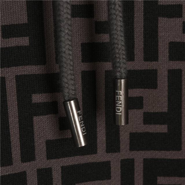Fendi 25Fw Double F Element All-Over Logo Hoodie Set. Understated luxury, classic Fd elements, casual and comfortable to wear, body color is consistent with the print, high production cost. Classic all-over logo print, all woven in, extremely high process cost. Best paired with matching trousers! Colors: Dark Gray, Burgundy. Size: Xs-L.