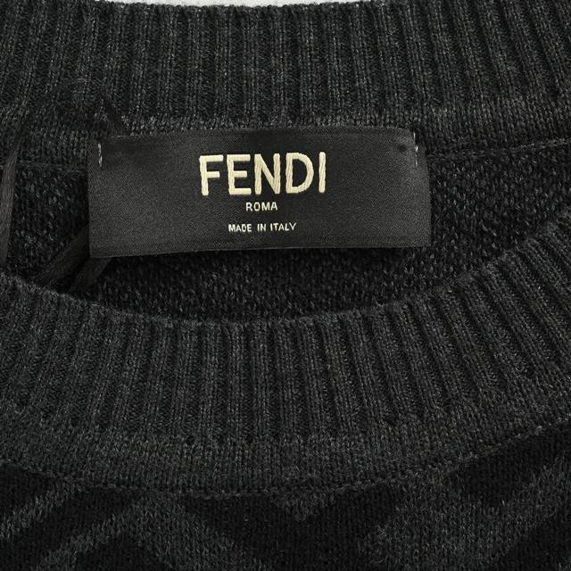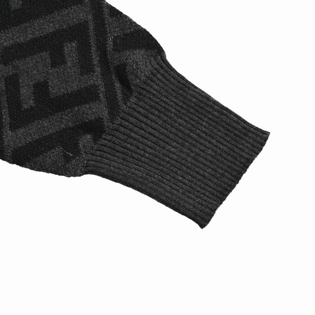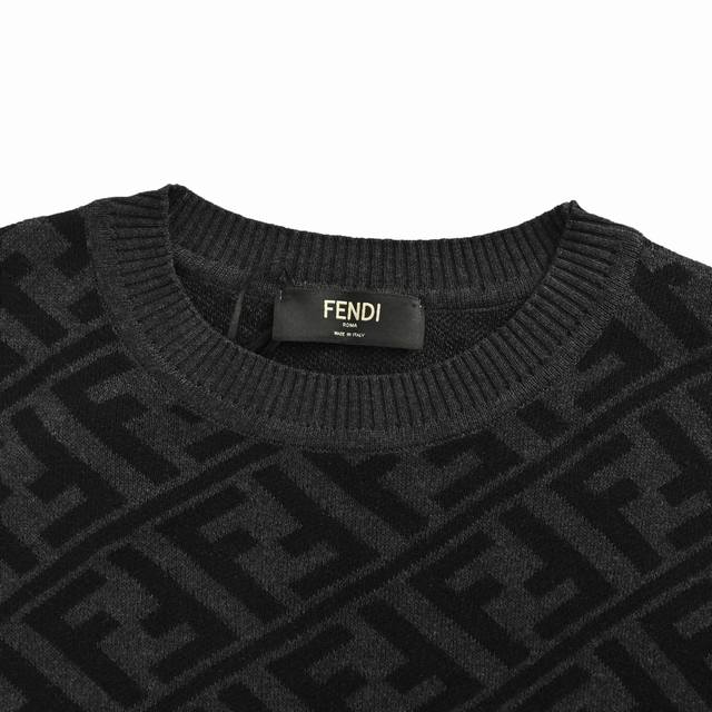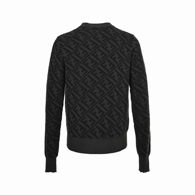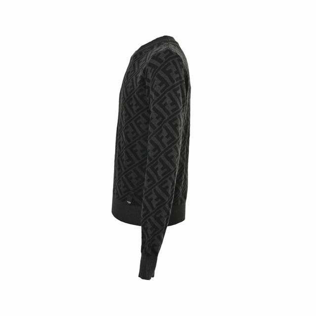 Fendi 25Fw Ff All-over Jacquard Crew Neck Sweater. Made of 20% Merino wool, this sweater uses a jacquard positioning method, employing yarns of varying densities in the weaving and knitting process. High-precision machinery is used to position and ensure consistent spacing between each pattern piece. The hem is hand-sewn to guarantee accuracy in positioning and spacing. This hand-sewing technique showcases the artisan's exquisite skills and attention to detail. Loose fit. Size: SL.