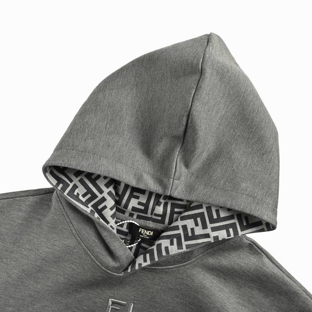 Fendi 25Fw Ff Embroidered Space Cotton Hooded Sweatshirt Ddd Made of 480g double-layer luxurious air cotton fabric Ddd Digital direct-to-garment printed logo and lettering double-layer splicing Ddd Imported Tajima machine 3D embroidery Ff Ddd Hand-sewn neck label and buttons at the hem Ddd Double-needle stitching cross-stitch Ddd Original main label, wash tag, moisture-proof paper packaging Ddd Color: Gray Ddd Size: S-XL DDD