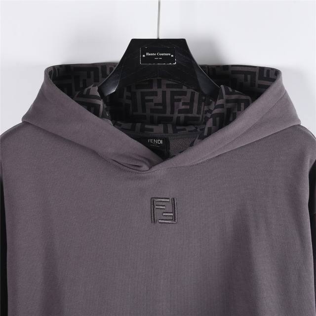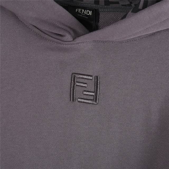 Fendi 25Fw Hooded Sweatshirt with Ff Embroidered Neckline and All-over Print Lining. The fabric is made of pure cotton with double anti-pilling and anti-static properties, greatly improving durability and comfort. It retains the softness, breathability, and moisture-wicking properties of pure cotton, offering a rich and delicate feel. The main body is pure cotton, while the hood features a striking color-blocked Ff brand lining, creating a striking contrast. The front is adorned with a matching Ff logo embroidery, adding a touch of sophistication and texture. The overall style is simple and trendy, balancing casual comfort with brand recognition. The lining uses a water-based ink penetration printing process, a printing technique that achieves high penetration. The ink is evenly applied to the fabric surface and then dried using UV curing, resulting in a film with good elasticity and durability. 3D embroidery using the flat stitch technique is a special embroidery method that uses flat stitches to create a three-dimensional effect. This technique precisely controls the depth and angle of the stitches, increasing density and length to create a richer three-dimensional effect and greater depth. Colors: Black, White, Gray. Size: Xs-L.