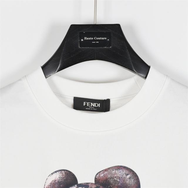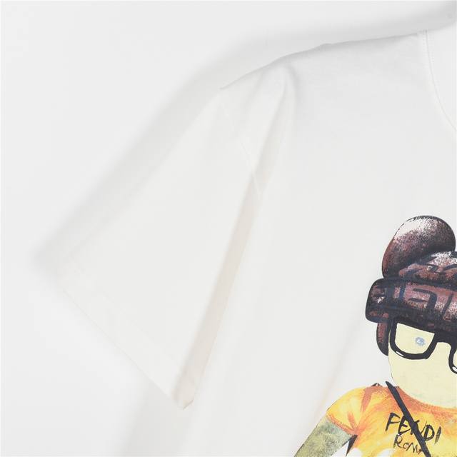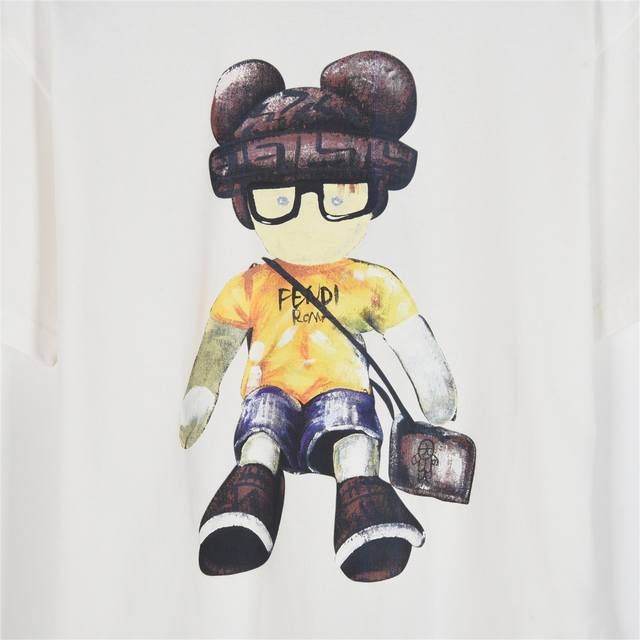 Fendi 25Ss cartoon character hand-painted short-sleeved T-shirt. Made from custom-woven and custom-dyed 260g imported fabric, this piece is exceptionally comfortable, soft, and breathable. The chest features a full-length digital print of the double F cartoon character and the logo. Each print perfectly captures the brand's signature style. Repeated printing and drying enhances the print's depth, achieving a flawless finish. This summer piece is a must-have for both men and women. Colors: Black, White. Sizes: S-Xxl.