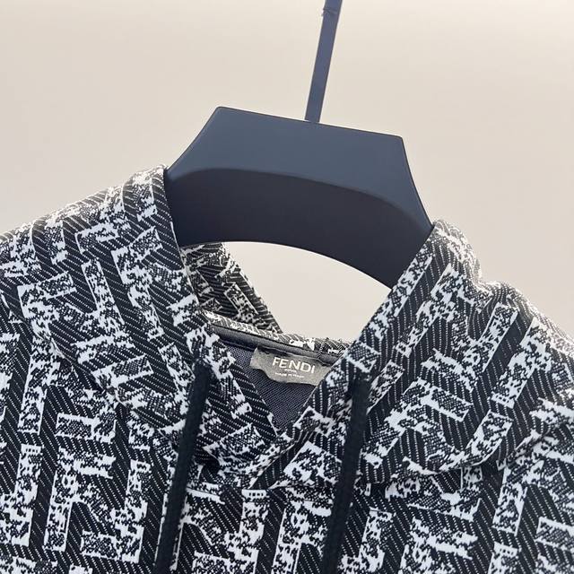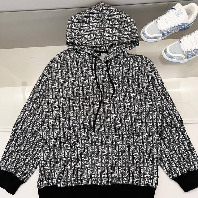 Fendi 420g Custom Fabric Hooded Sweatshirt, Monogram Logo All-over Print, Color Block Sleeve Design, Craftsmanship Markings, Official High-Quality Version, Stylish, Versatile, Trendy, Pure Original Quality Fabric, Complete with Hangtag, Neck Label, Washing Label, and Three Tags, Colors: Black/White, Black/Grey, Sizes: XS-L