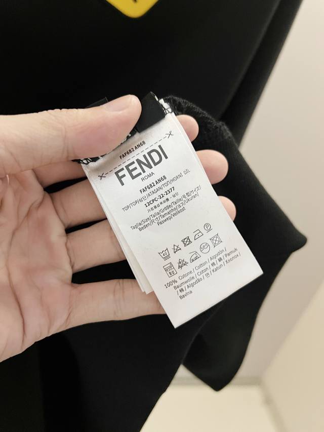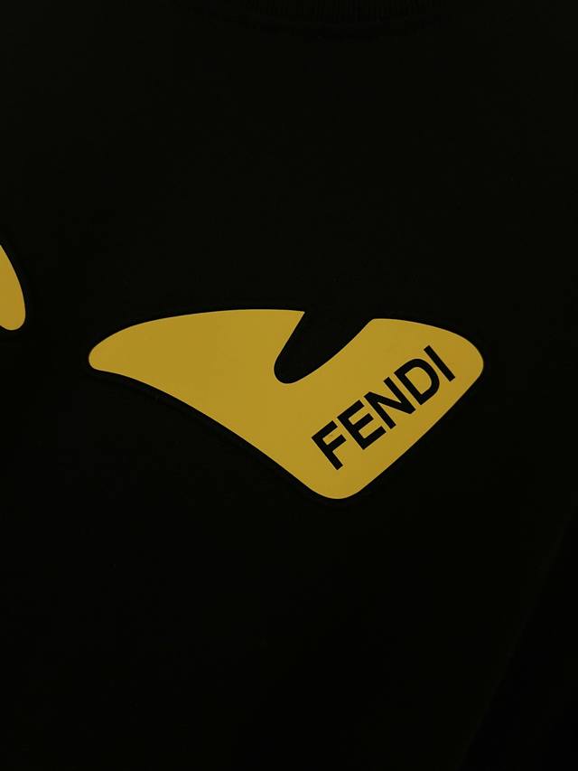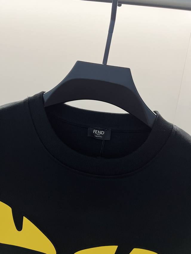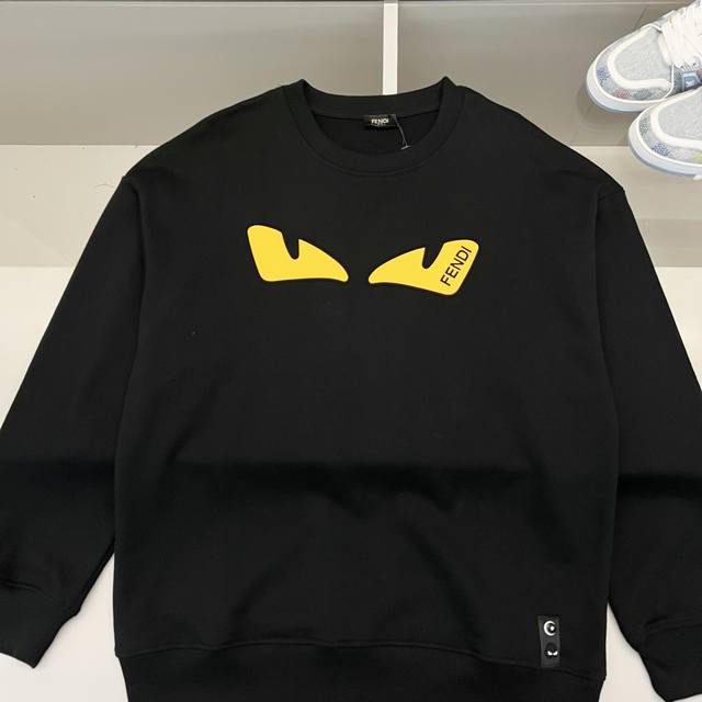 Fendi 420g pure cotton crew neck sweatshirt. Features a 3D monster silicone yellow eyes and logo. Officially synchronized high-quality version. Stylish, versatile, and trendy. Made with original quality fabric. Includes hangtag, neck label, and wash label. Colors: Black, White. Sizes: XS-L.