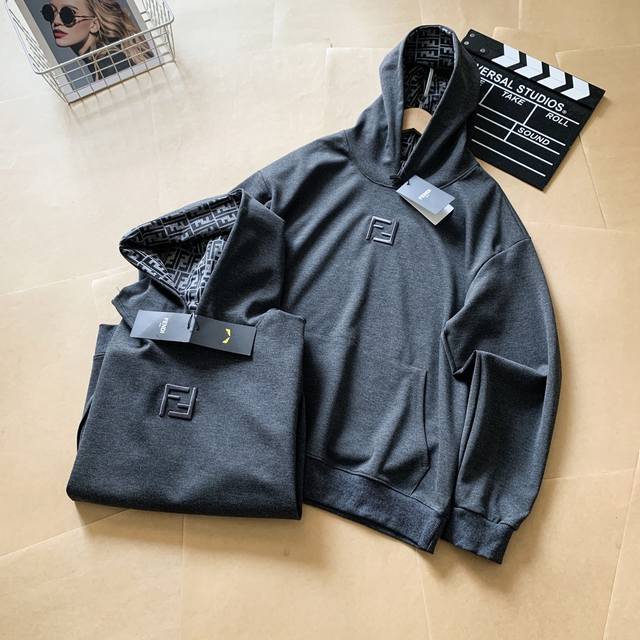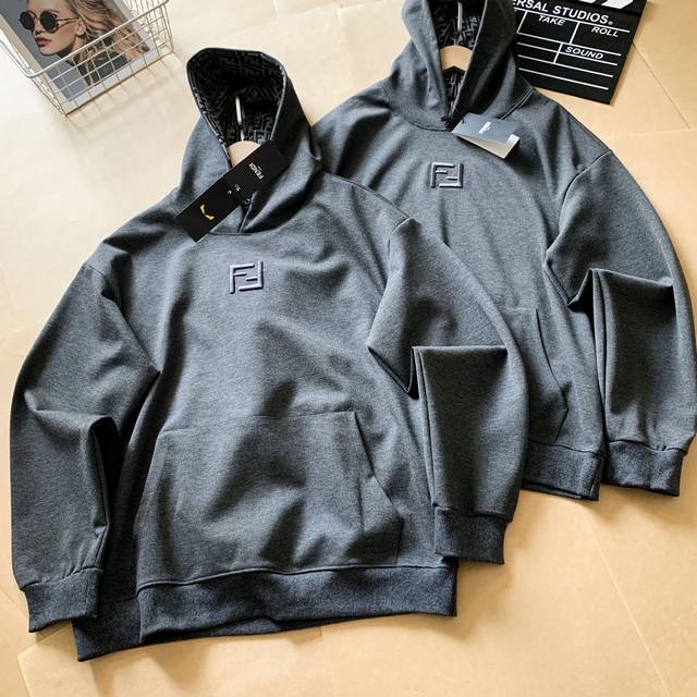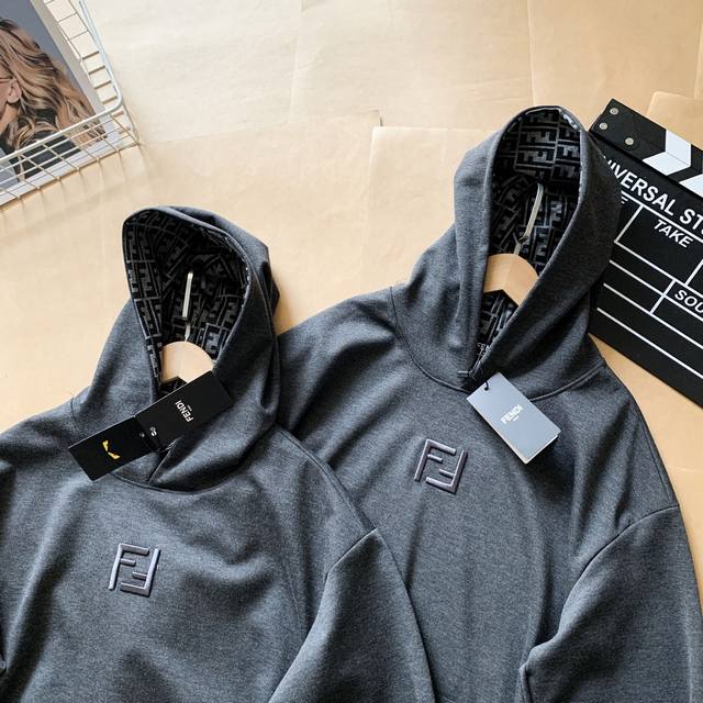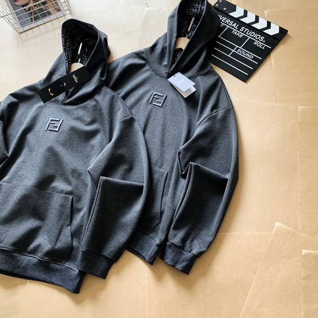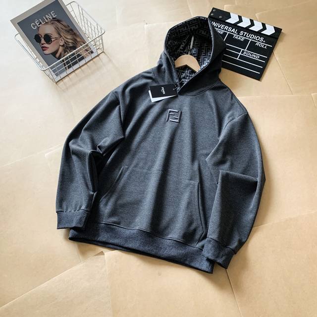 Fendi 420g pure cotton hooded sweatshirt. Simple, small-letter logo embroidery and Ff patch hood. Officially synced with the latest high-quality materials. Stylish, versatile, and fashionable. Made from authentic, original fabrics. Includes a hangtag collar and three fully-labeled washable fabrics. Color: Gray. Sizes: M-Xxl. M: Length 70cm, Chest 116cm, Shoulders 56cm. L: Length 72cm, Chest 57cm, Shoulders 57cm. Xl: Length 74cm, Chest 124cm, Shoulders 58cm. Xxl: Length 76cm, Chest 128cm, Shoulders 59cm.