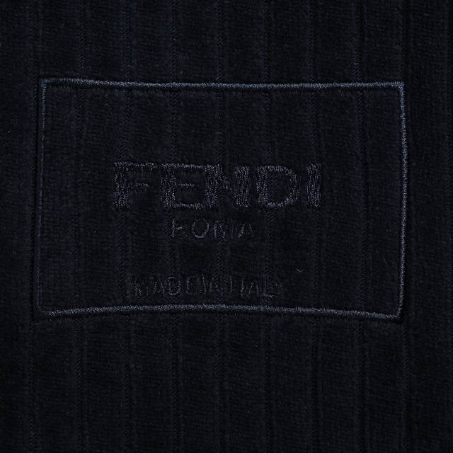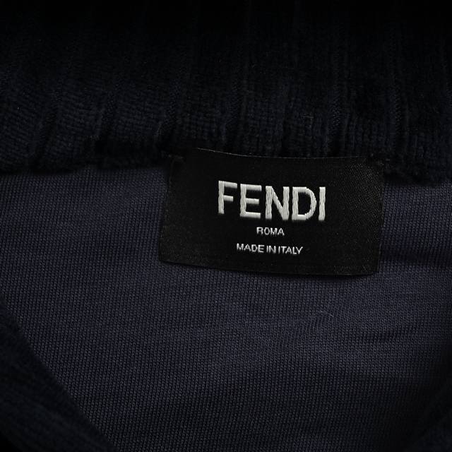 Fendi Blue Corduroy Zip-Up Sweatshirt Jacket. Made from 100% cotton corduroy fabric with prominent vertical stripes, this jacket features a 1:1 custom double-F logo zipper pull. The drawstring ends are finished with contrasting metal accents. The cuffs and hem utilize a circular knit rib knit for a highly elastic and soft fit against the skin. 1:1 custom accessories included. Size: S-XL.