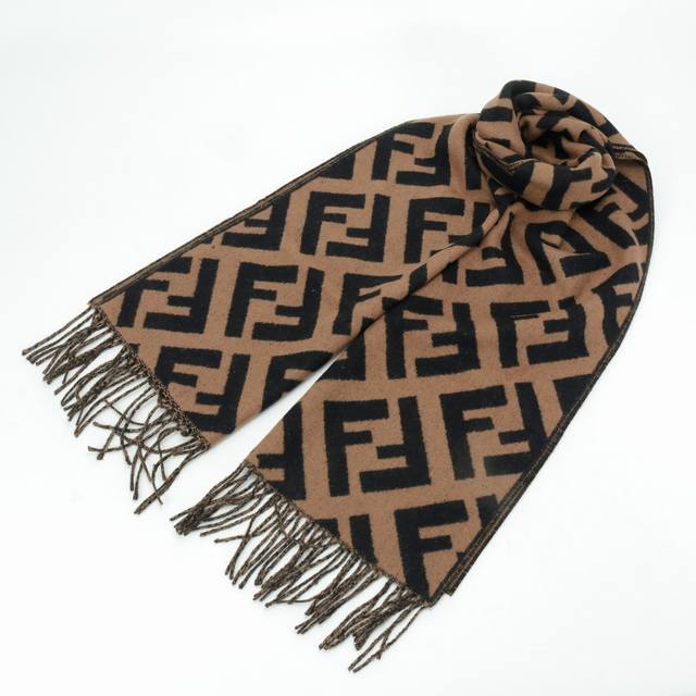 Fendi Classic Cashmere & Wool Long Scarf (Monograph) Made of wool and cashmere. Full-print design using imported knitting machines. Comes with full packaging. Size: 170*45 cm.