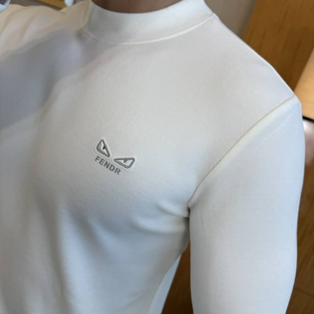 Fendi Early Autumn New Arrival Men's Long-Sleeved Cashmere Base Layer Shirt. Made with custom-made high-grade cotton fabric and featuring a stylish designer logo design, this soft, delicate, comfortable, and warm shirt is crafted using multiple processes. A must-have basic base layer in every man's wardrobe, it can be paired with various outfits anytime, anywhere to meet your daily needs. The design is simple yet sophisticated. Grab yours now! Standard fit, sizes: M~3XL