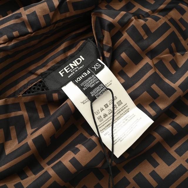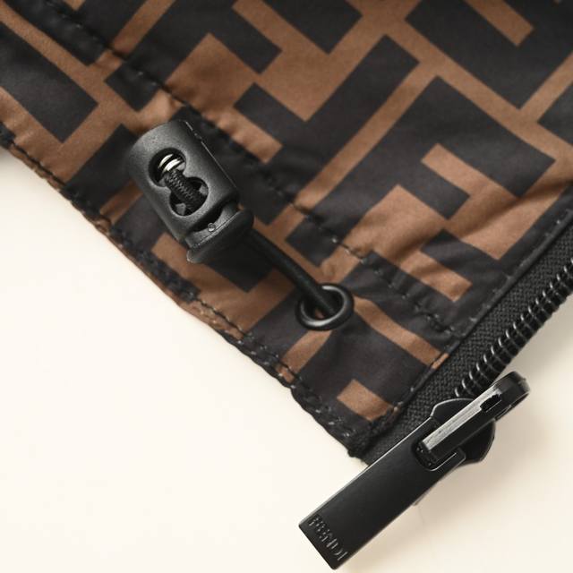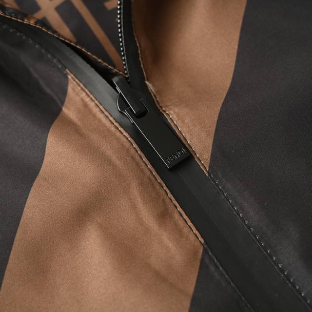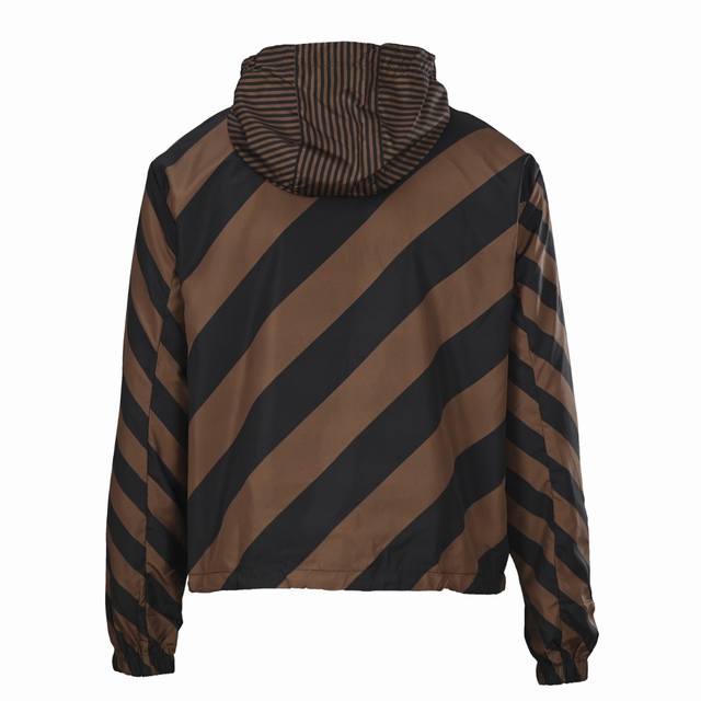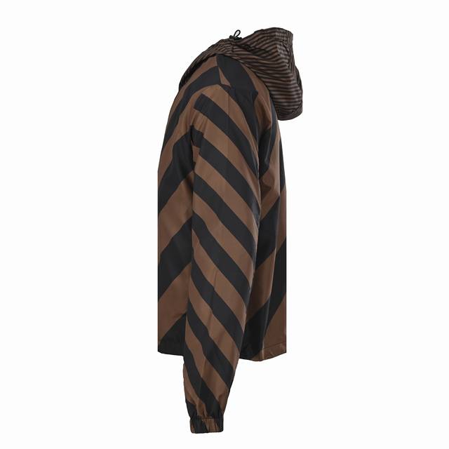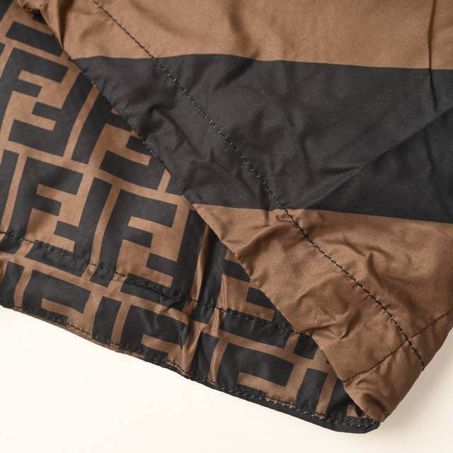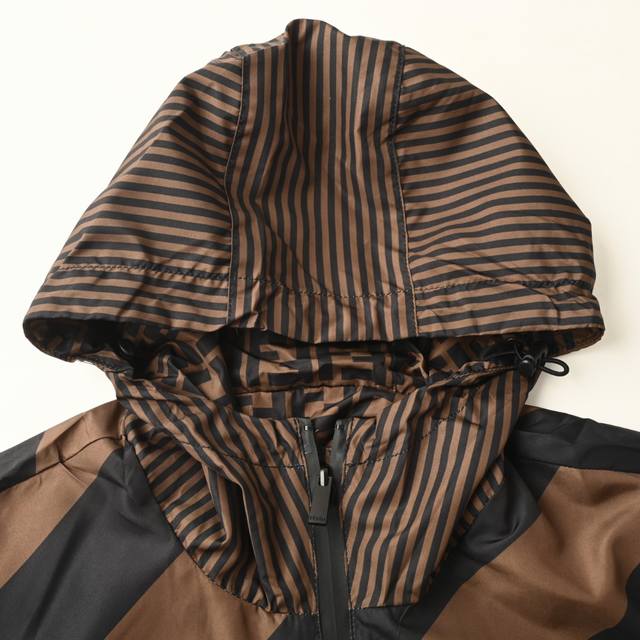 Fendi Fd All-over Logo Reversible Windbreaker Jacket. This jacket features an all-over logo reversible design, available in striped and all-over logo jacquard versions, allowing for easy switching between styles. The design speaks for itself