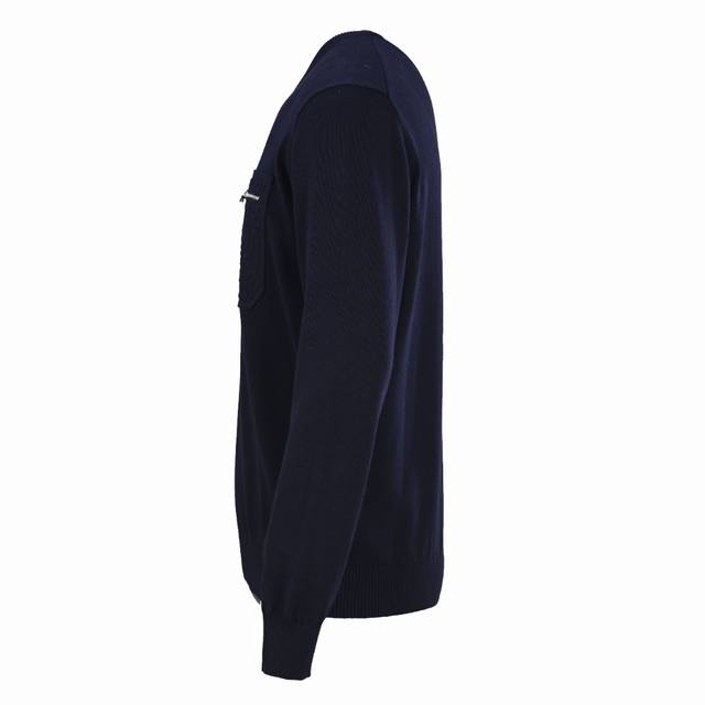 Made of high-quality wool yarn, it feels delicate and soft and has excellent thermal insulation performance. It is custom-dyed in the original navy blue. It has a zipper chest pocket design. The zipper is decorated with the same color embossed Ff logo and silver-finished Fendi O'lock metal zipper pull. The hem is decorated with mother-of-pearl buttons. Standard version