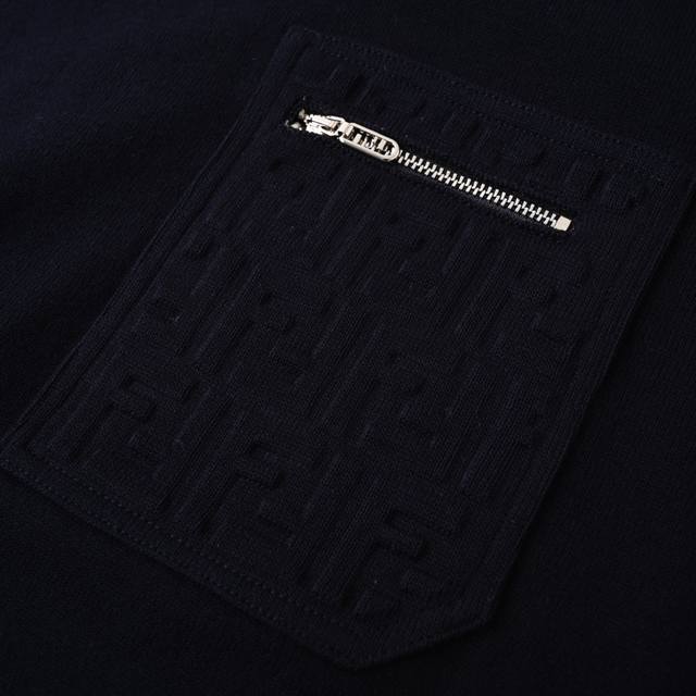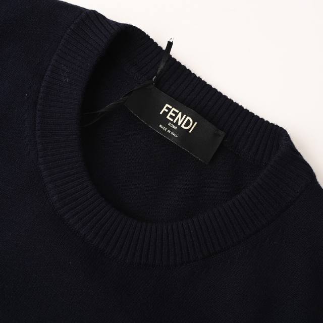 Fendi Fd embossed pocket navy blue crew neck sweater