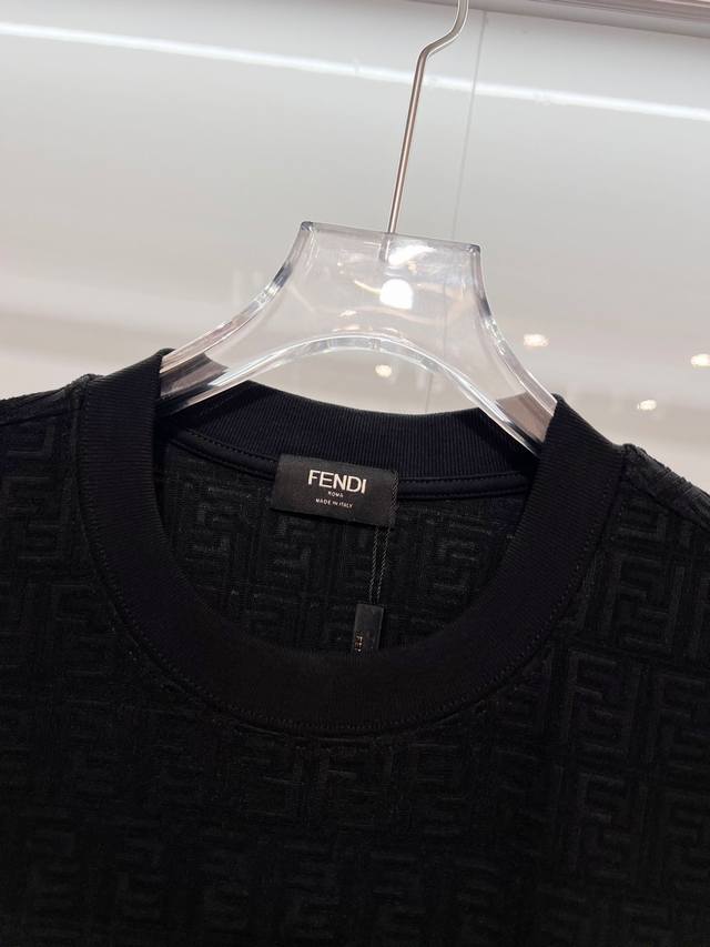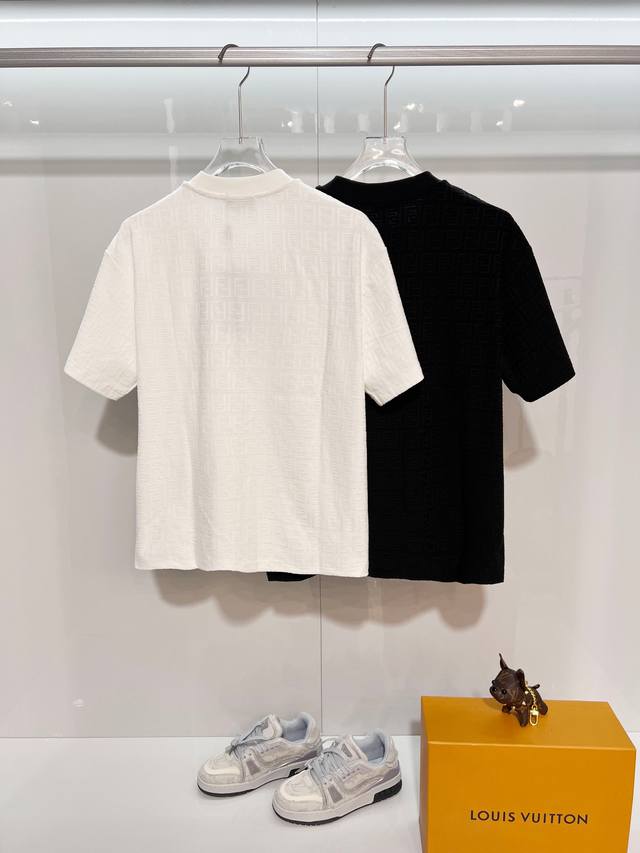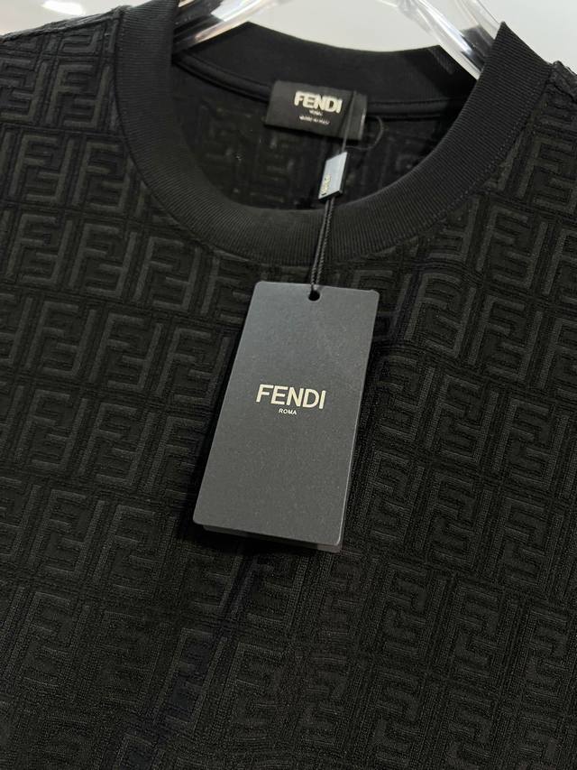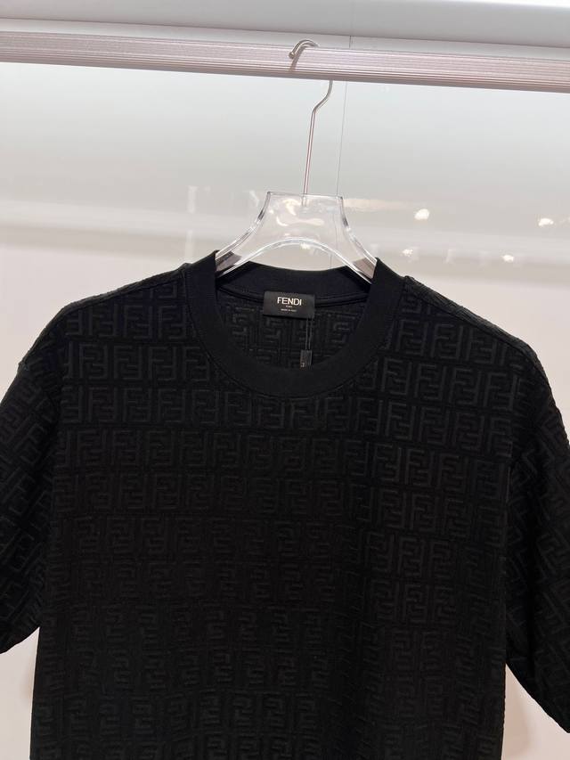 Fendi High-Quality 320g Crew Neck Short Sleeve T-Shirt Brand Classic All-Over Print Monogram Pattern Double F Jacquard Logo 2026Ss Early Spring Official Synchronized High Version High-Quality Fashionable and Versatile Trendy Pure Original Quality Fabric Complete with Hangtag, Neck Label, Washing Label, and Three Labels Colors: Black, White Sizes: S, M, L, XL