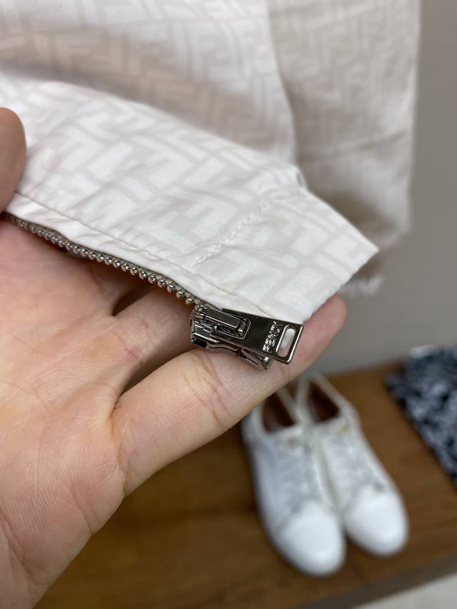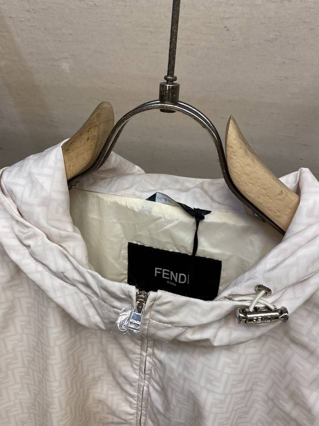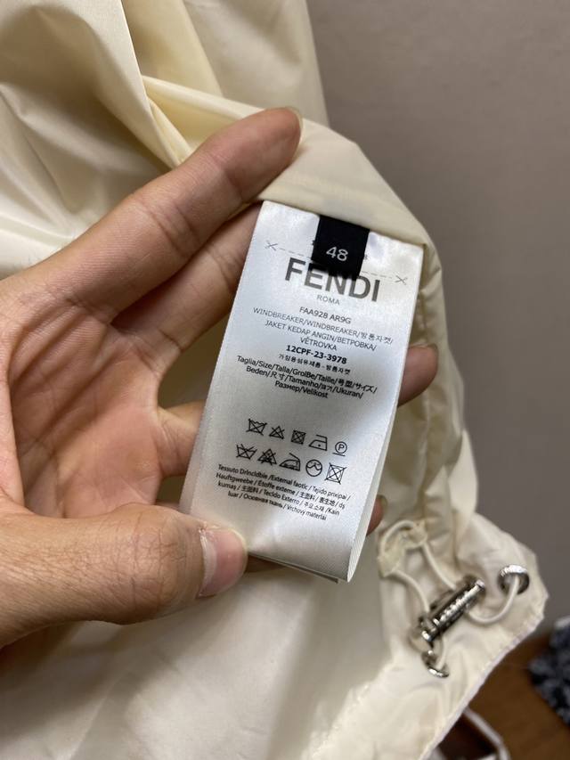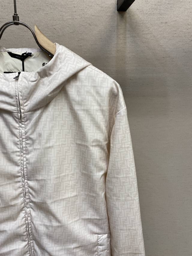 Fendi, Indonesian Dragon Windproof Jacket DDD Fabric Ddd is made of high-end ultra-fine nylon. The fabric undergoes special treatment to achieve both waterproof and abrasion-resistant properties, while also offering a soft touch and lightweight feel. Nylon itself has excellent wrinkle resistance and is easy to care for daily. DDD Craftsmanship and Details Ddd uses screen printing technology to present the brand's classic double-F logo on the fabric, resulting in vibrant colors and high durability. Ddd meticulously tailors the garment to ensure the logo is perfectly aligned, achieving a 1:1 reproduction. The hood and hem feature round elastic drawstrings and custom-made metal adjustable buckles, allowing for adjustable tightness. The zipper design is also an essential opening method for windbreakers, and the zipper pull with the brand's logo further enhances brand recognition. The flat elastic cuffs fit the wrists well, providing both comfort and warmth. The double side pockets offer convenient storage, and the pocket openings are bound for a neat and stylish look. Accessories: 1:1 elastic adjustment buckle; 1:1 care label; Sizes: S-XL