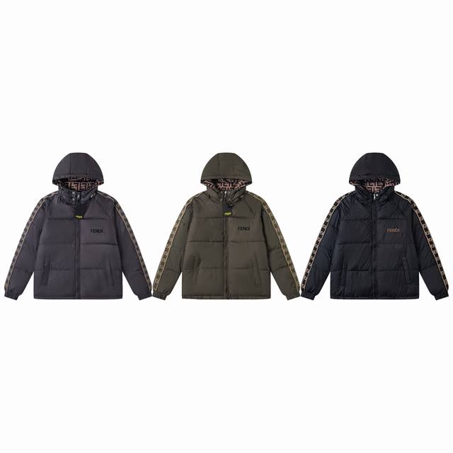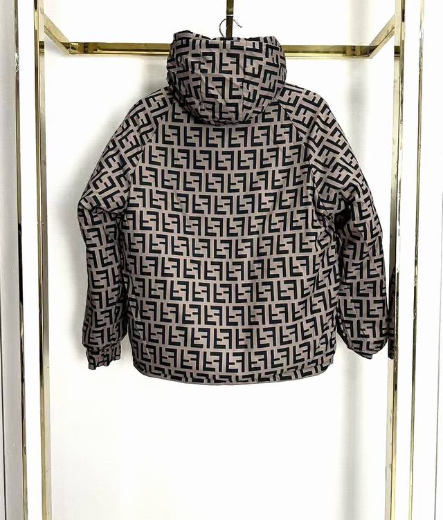 Fendi Limited Edition Reversible Down Jacket for Couples. One side features a custom-designed embroidered ribbon with thousands of stitches, exuding a high-end feel. The other side boasts a classic monogram print with an all-over F-pattern. 1:1 replica, perfectly tailored to the original design, truly a faithful reproduction. Original custom-made, leaving no detail overlooked. Genuine down filling, weighing a hefty 550 grams. The hood has a super-stylish and well-fitting cut, specially filled with soft imitation silk cotton. The stand-up collar design provides perfect warmth, a winter essential. Unisex, versatile, and easy to style. Highly recommended! Colors: Black, Dark Green, Dusty Rose Purple. Sizes: XL-5XL.