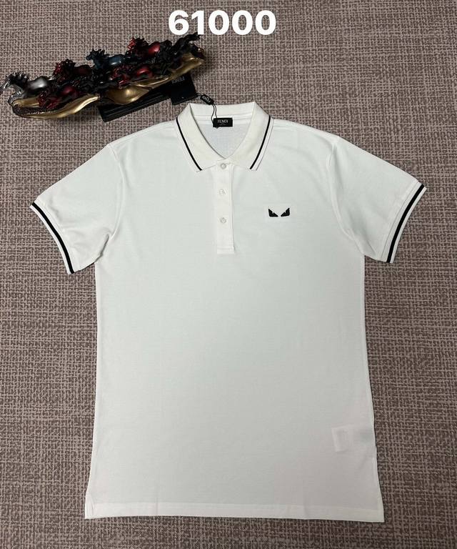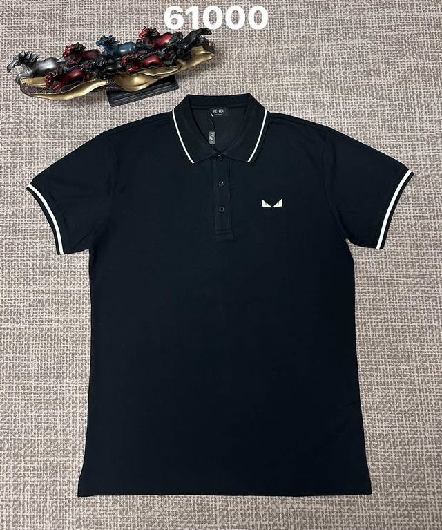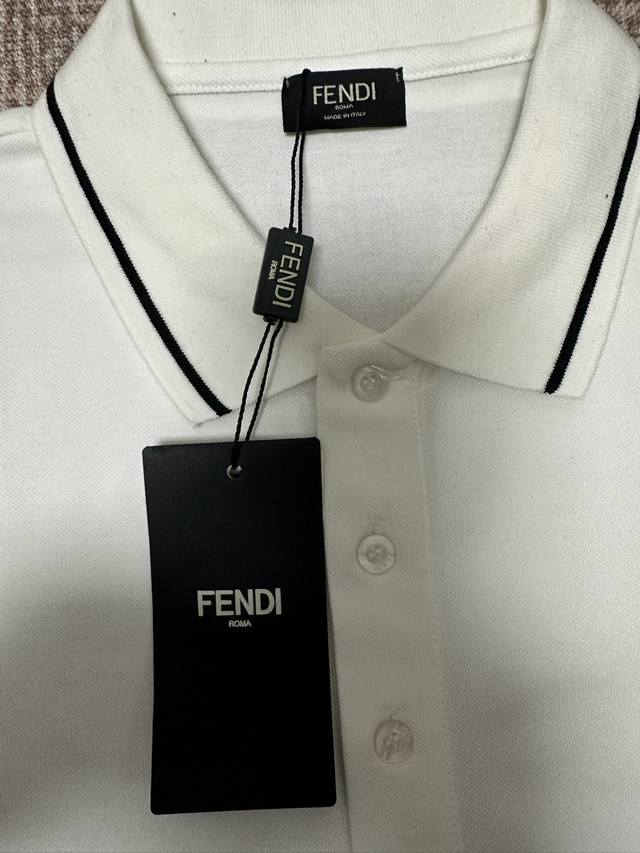 / Fendi men's open-chest collared shirt, 61000 style, pure cotton fabric, embroid