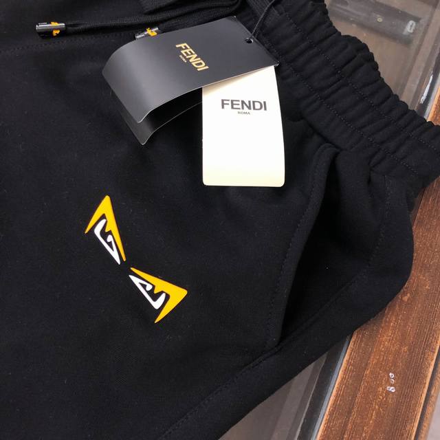 Fen*Di new casual shorts~customized sweatshirt terry cotton fabric, soft and comfortable, excellent skin-friendly, sweat-absorbent and breathable! Hardware with iconic logo! Fluorescent small eye print pattern, simple casual style creates a fashionable item that combines leisure and personality, atmospheric and versatile, a must-have for going out! ! Same style for men and women! ! Three labels are complete! !