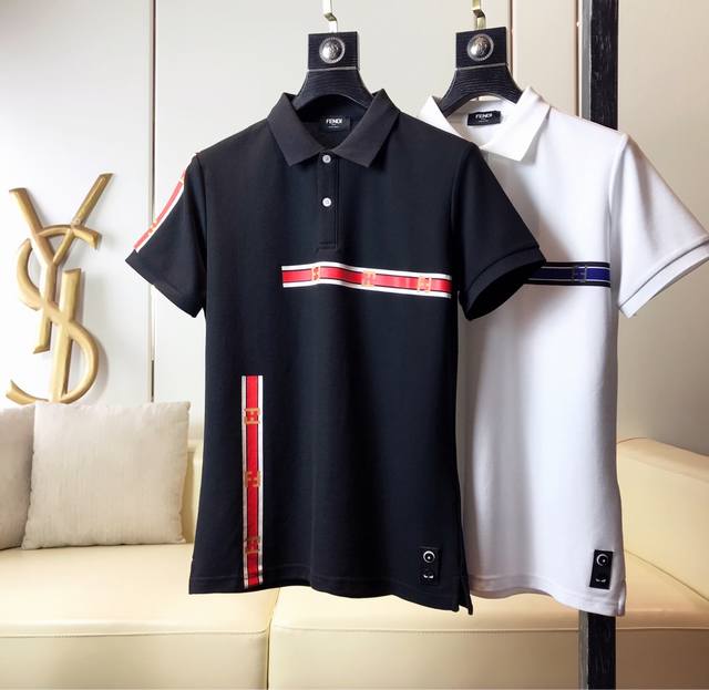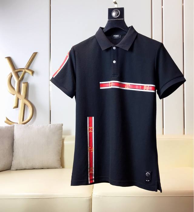 Fendi original version polo shirt, short-sleeved, small logo print, latest release, popular short-sleeved shirt made of imported pique cotton, developed according to the original design, sizes: M-3XL DDD