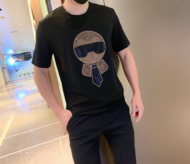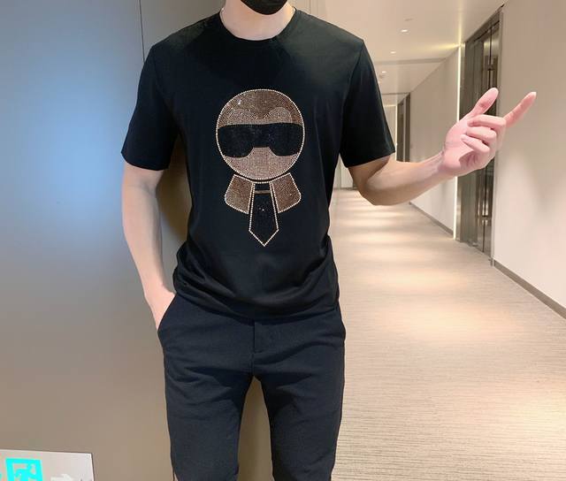 Fendi Spring/Summer New Short-Sleeve T-Shirt, made of high-quality mercerized fabric, soft and breathable, with a novel design featuring top-grade Austrian diamond embossing. Hot Selling Item: Sizes M to 3XL